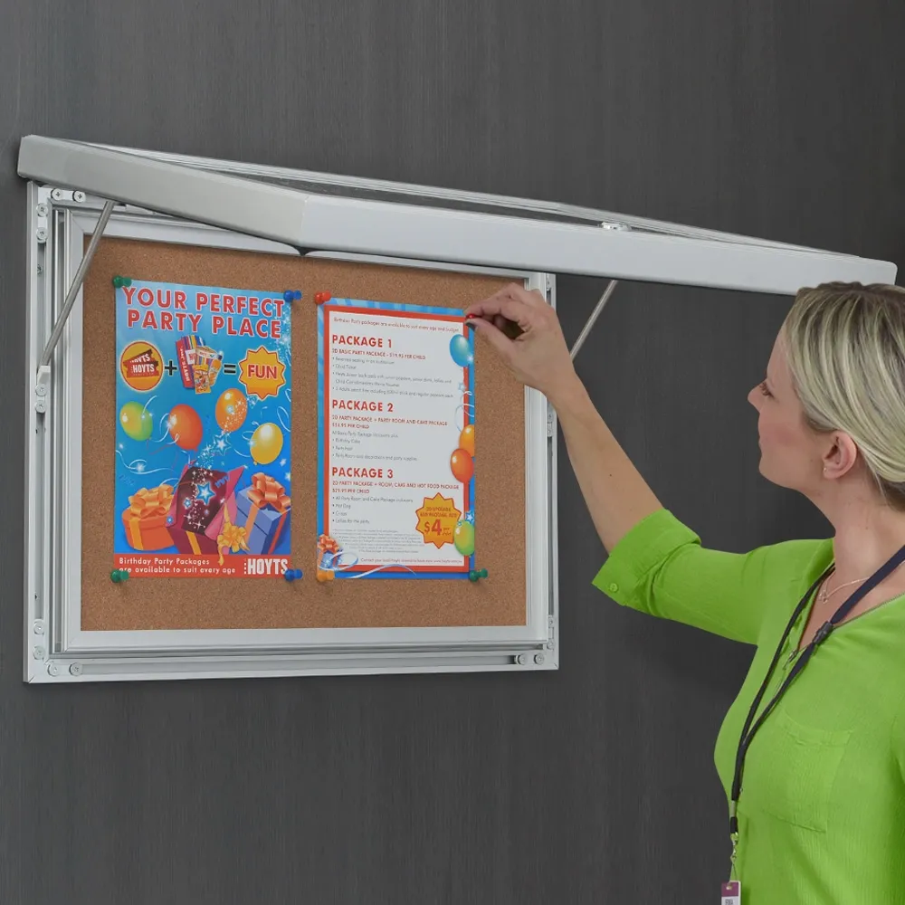 Notice board cabinets make a great addition to your marketing scheme, able to display posters, menus, flyers, timetables, and other important information for visitors read. This style of directory display is used in many locations, including retail stores, office parks, museums, universities, exhibition halls, transit stations, cafes, restaurants, and many more.