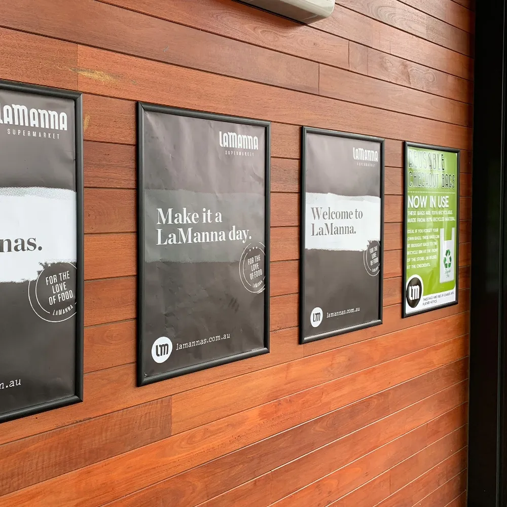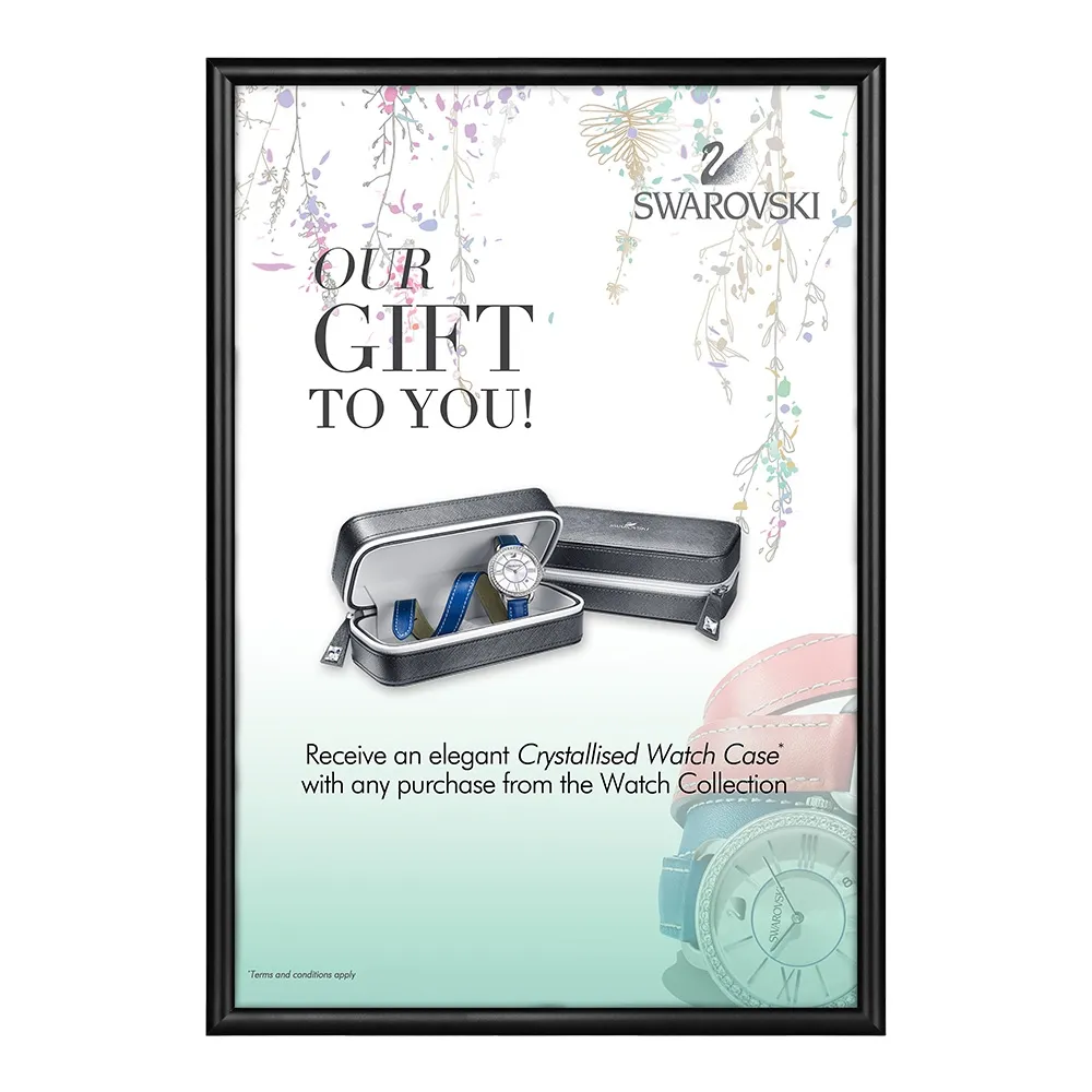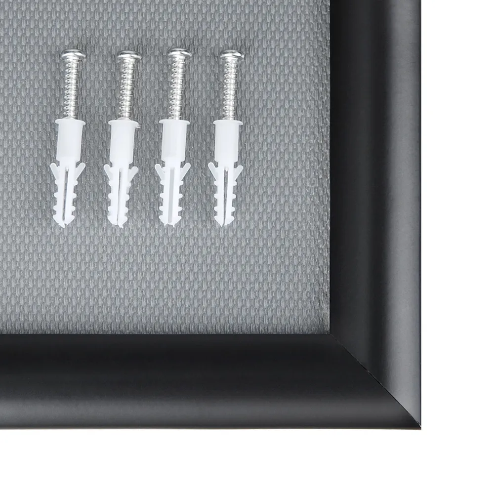 Snap frames are great as part of your advertising in retail, cafés or restaurants. The sign frames are constructed using aluminium in a matte black finish. Included is a protective plastic lens and hardware to mount your sign frame onto a flat surface. The snap frame is an easy to use poster holder that will allow you to easily update all your artwork at any time.