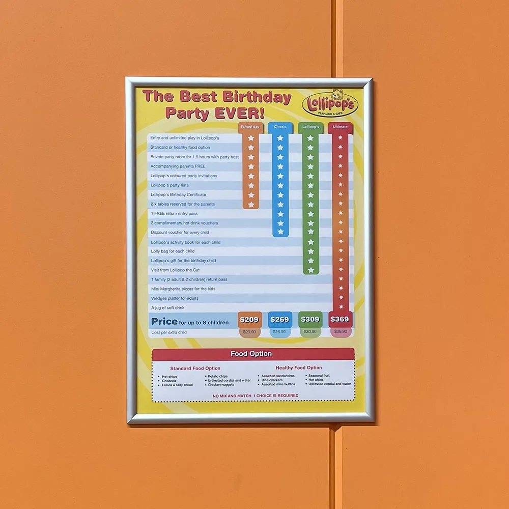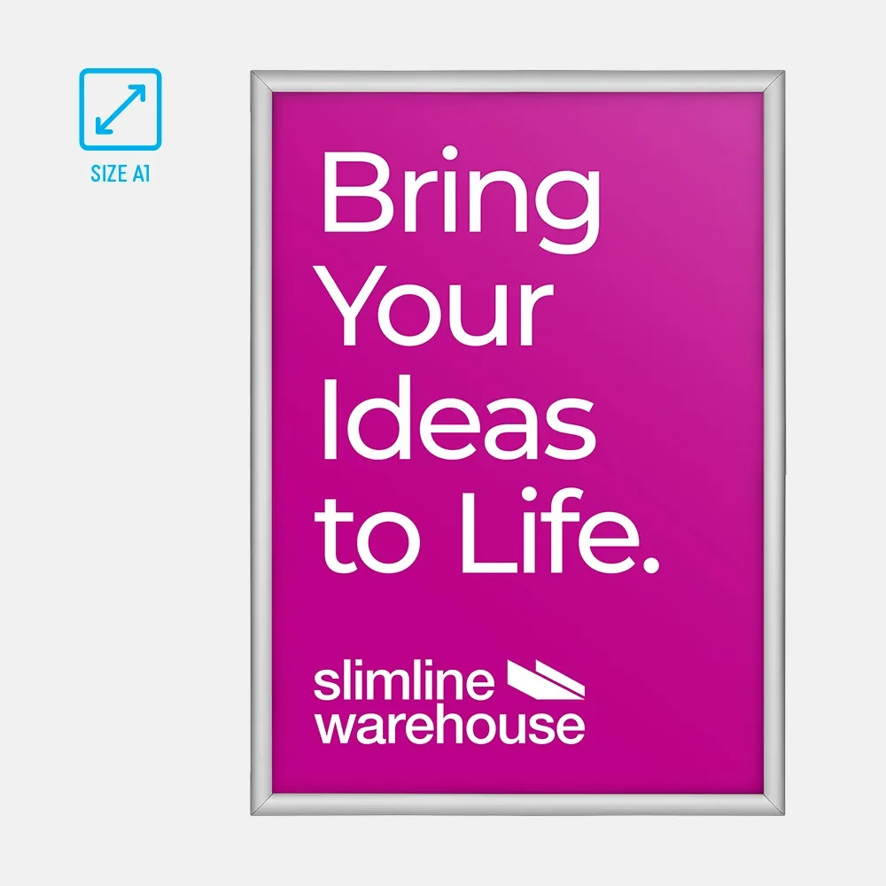 These sign frames can make an impact on any retail, restaurant or office environment. The A1 clip frame is made of aluminium & finished in matte silver. Hardware to mount the sign frame is included, as well as a clear lens to protect your artwork from dust and stop light reflecting off the plastic surface. Our snap frames can be displayed in either landscape or portrait format. Constructed with a slimline profile, the clip frame will make a great addition to your premises.