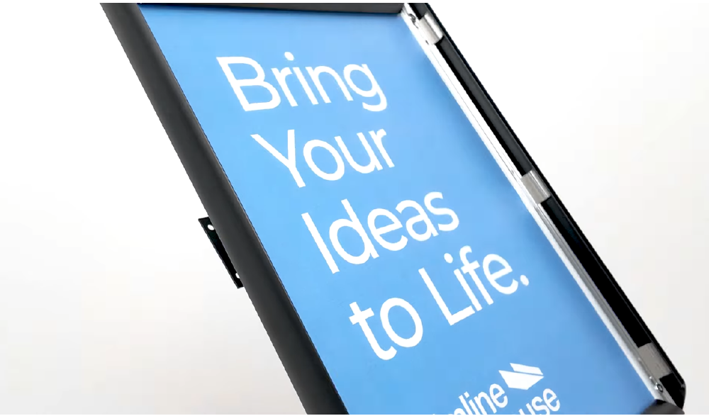 • Display signage uses snap frame for quick graphic changes that require no tools!