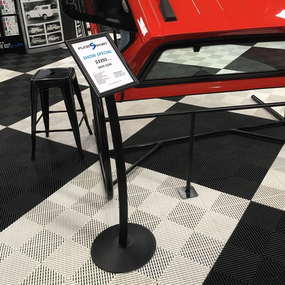The promotional poster stand, also known as trade show sign displays, feature an aluminium make with a black finish for a stylish design that will work well in any décor. The snap frame that is used to hold graphics makes changing out posters easy in under one minute without any tools necessary! An anti-glare lens is also included that helps keep grime from gathering on posters and making reading your sign easy.