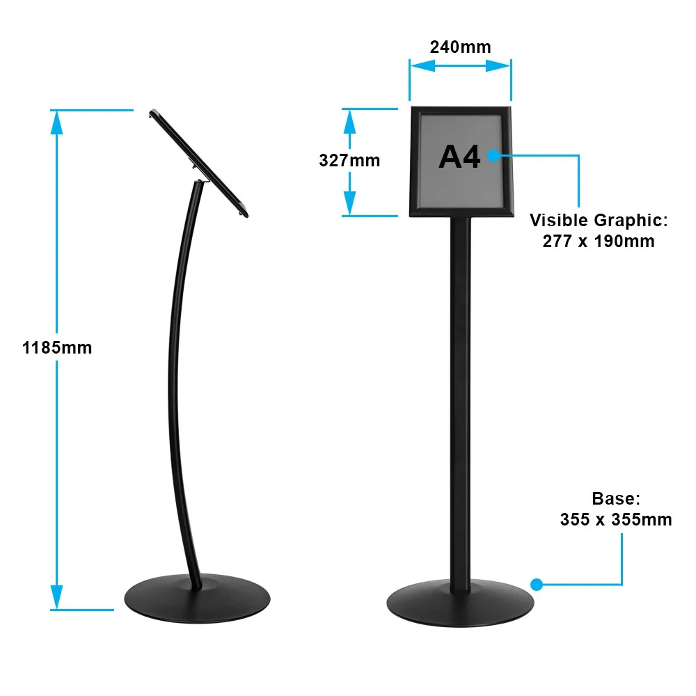This promotional poster stand is a truly effective marketing display, allowing you to place your A4 (297 x 210mm) graphic in portrait or landscape orientation depending on your need. Switching the format is easy as well, with the thumb screw nut allowing you to change what format your posters in at any time! The floor standing snap frame is perfect for many business types, including retail stores, cafes, restaurant, upscale clothing boutiques, book stores, and even exhibition halls!
