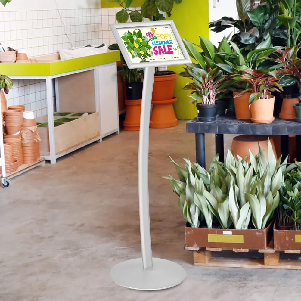A snap frame pedestal stand, like an aluminium sign holder, is great for showing menu choices and specials at restaurants or cafes, promoting sales and product information at retail stores, or even announcing hall information or upcoming events at trade show and exhibition halls. The floor standing clip frame makes switching out graphics easy too, with no tools needed to change posters in less than one minute!