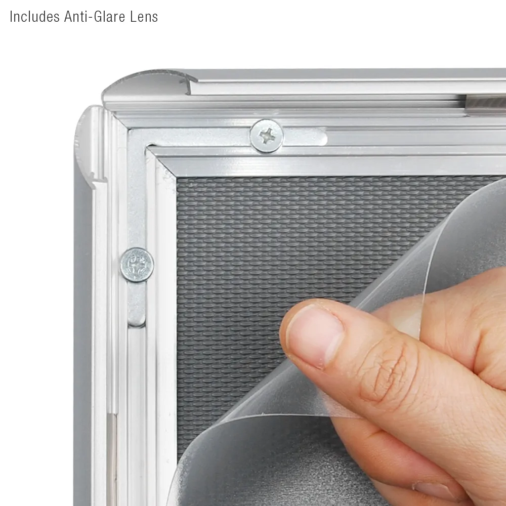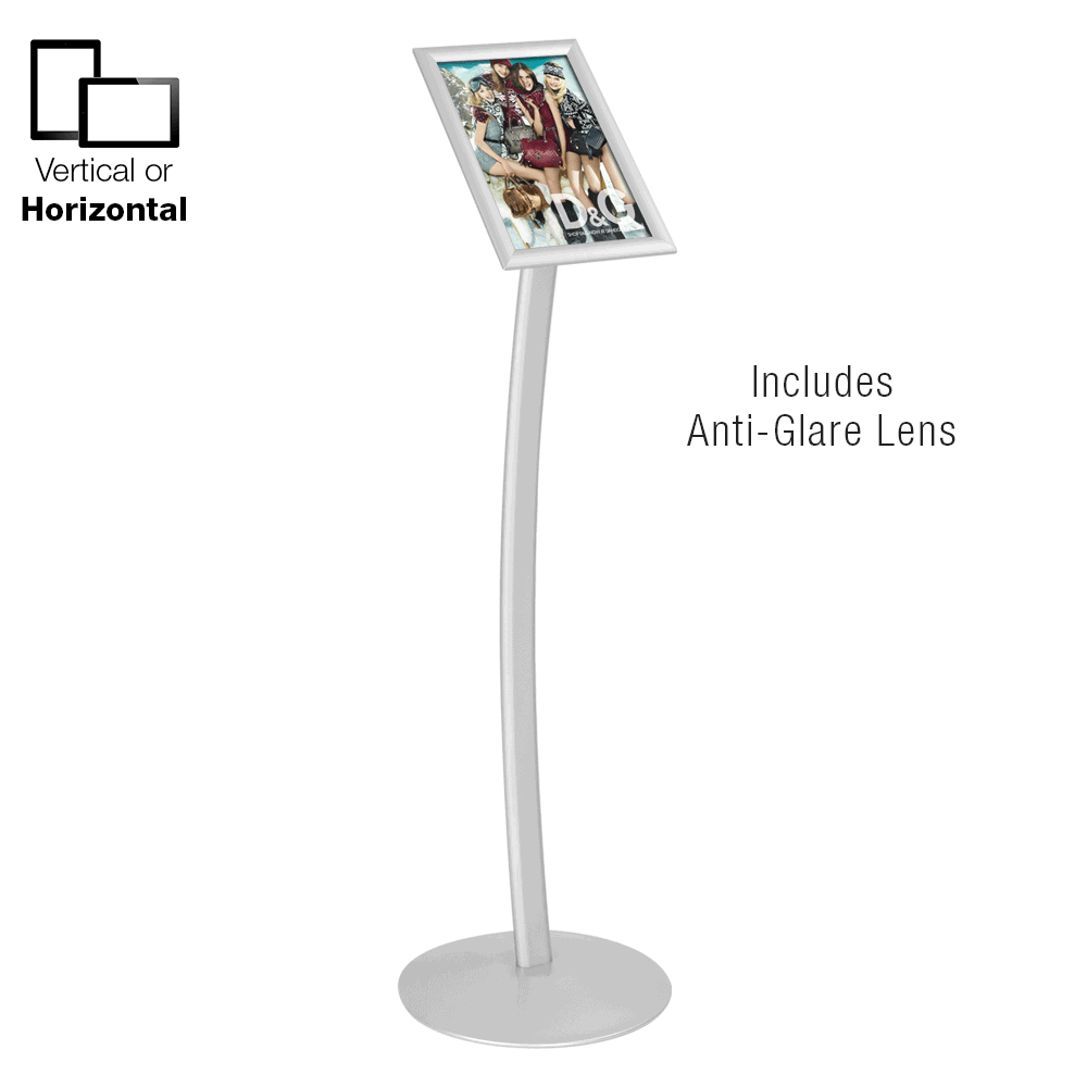 - Snap frame pedestal stand has anti-glare lens to help prevent damage to posters