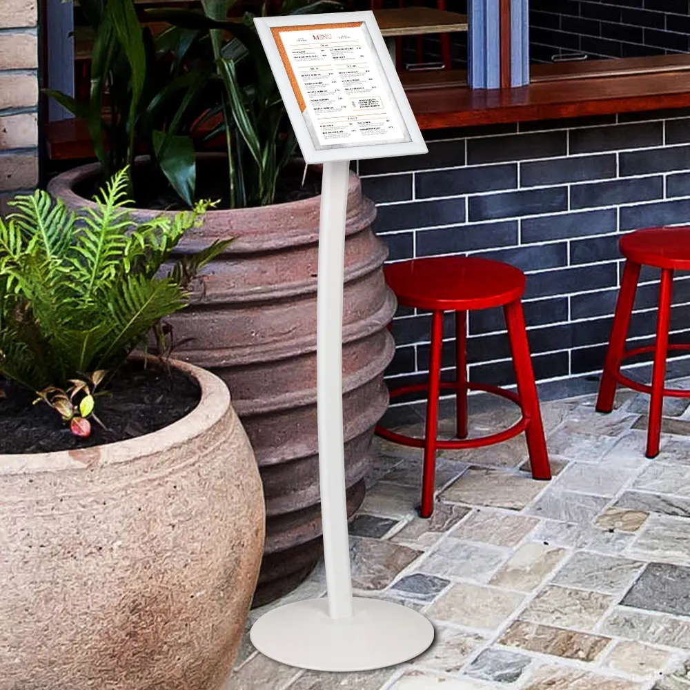 - Curved sign holder to display menus, promotions, advertisements and more!