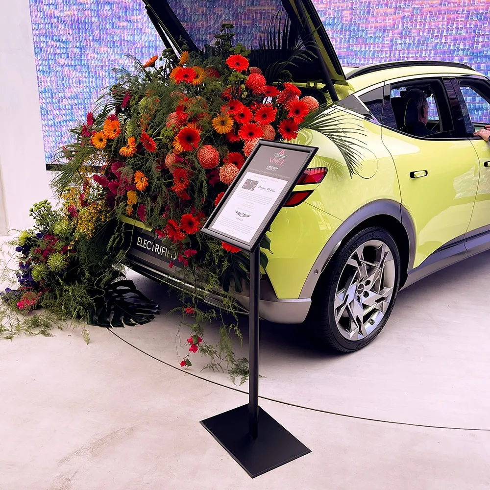 - Black aluminium stand provides long-lasting display that fits in with all decors