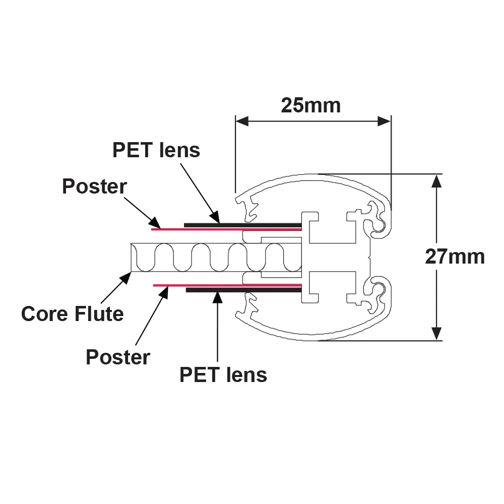 As these sign frames are a simple snap frame, updating your posters is an easy task. Just pull open the sides of the frame and place your A2 size artwork into the frame. The protective lens is laid on top to help reduce reflection on your advertisement and also finishes your professional poster display. The frame itself is manufactured using aluminium and is anodised silver.