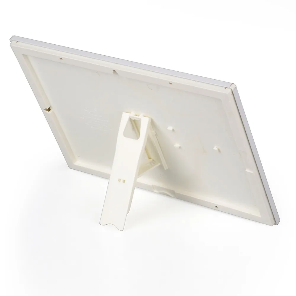 - A4 white frame is made of anodised aluminium with a classic white finish