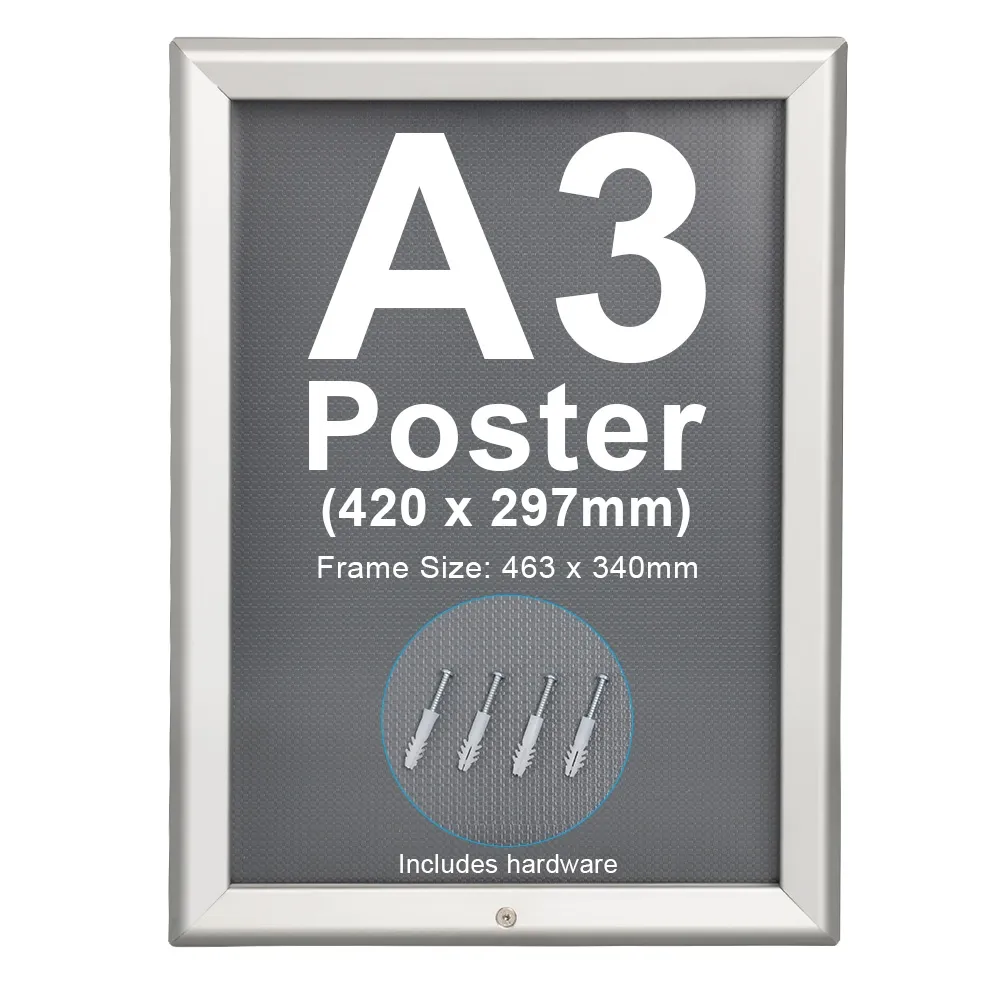 Lockable Clip Frame Poster Holder A3 Silver
