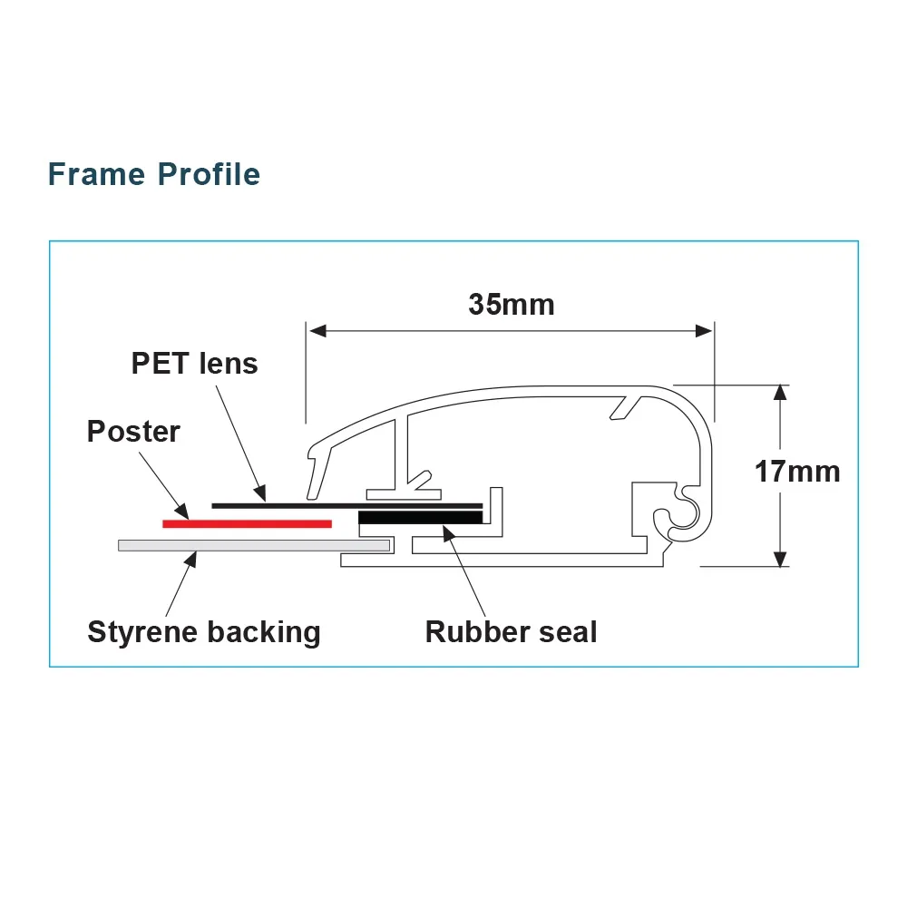 - Waterproof poster holder uses a patented rubber gasket inside to prevent water seepage