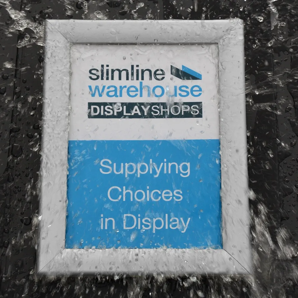 Buy this 100% patented front loading frame to display posters outside of your business to show upcoming events, menus, sale specials, and more! The waterproof clipframe is specifically designed for outdoor use, with the waterproof frame sporting heaps of features to be long-lasting and protect your posters. A rubber gasket within the frame helps form a tight seal between the snapframe and protective lens to help prevent water from seeping inside. The clear PET lens has UV protection to help prevent fading over time due to sun exposure.