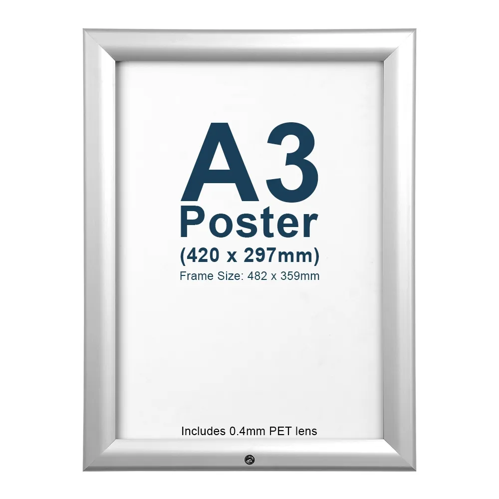 • A3 snap frames are made from rust & corrosion resistant silver aluminium