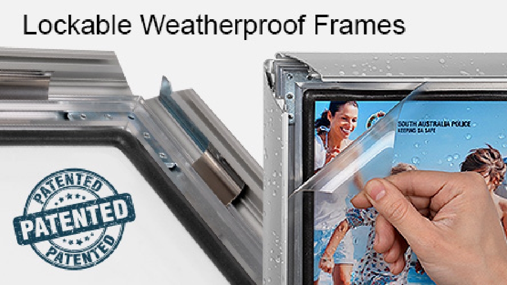 This poster display is weatherproof as well, with a rubber gasket forming a tight seal between the clip frame and the protective lens to help prevent water from seeping in and damaging the poster. The silver anodised aluminium frame is rust resistant and holds up well to regular use outdoors. Using a clip frame ensures quick poster change outs once unlocked, with less than a minute needed to change posters. Order today by 3pm AEST for same day despatch to anywhere in Australia, including Brisbane, Melbourne, Perth, Adelaide, Sydney, & Gold Coast!