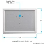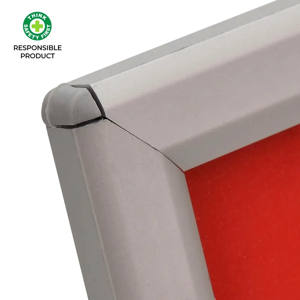 • Clear anodised extruded aluminium frame with plastic corners pieces to eliminate sharp edges