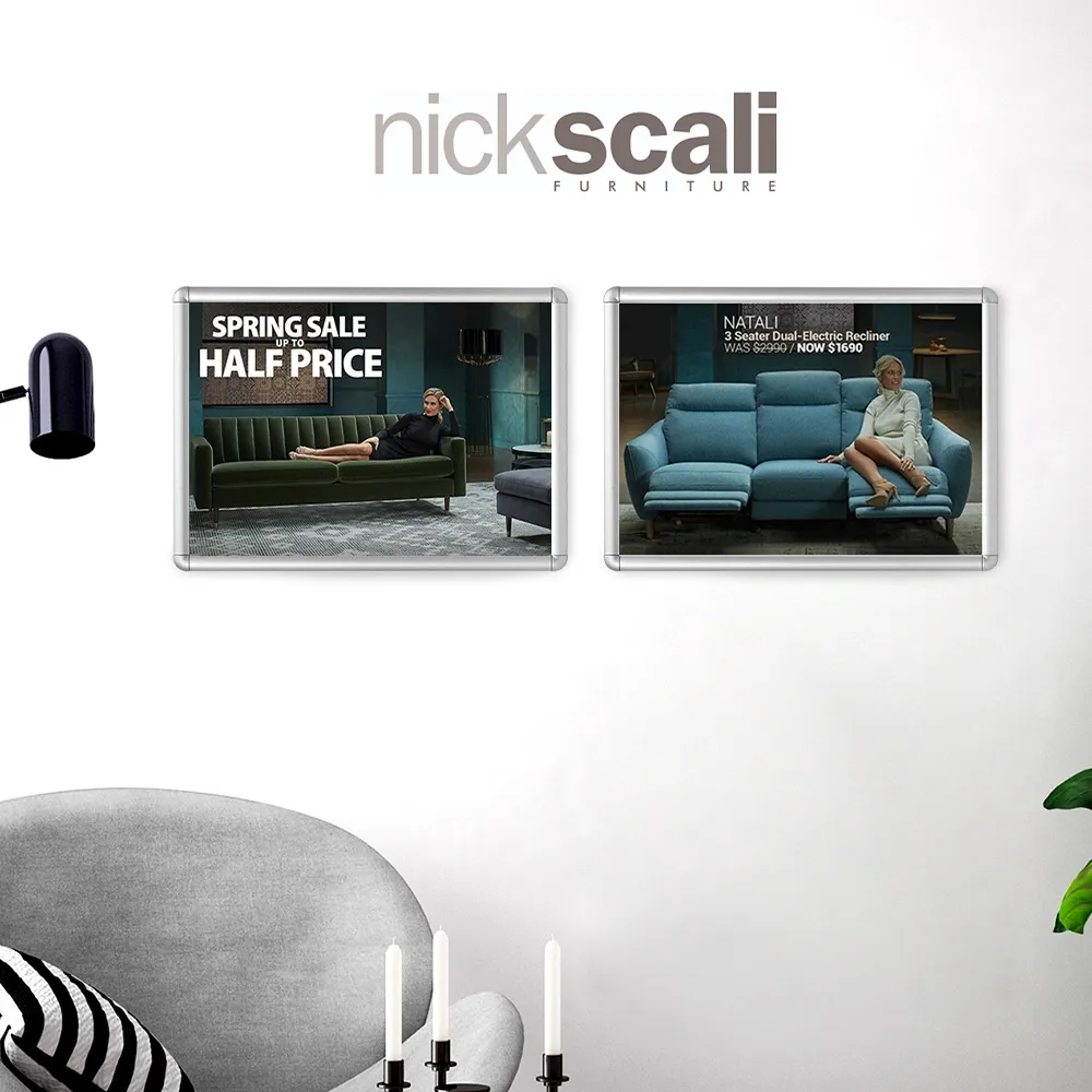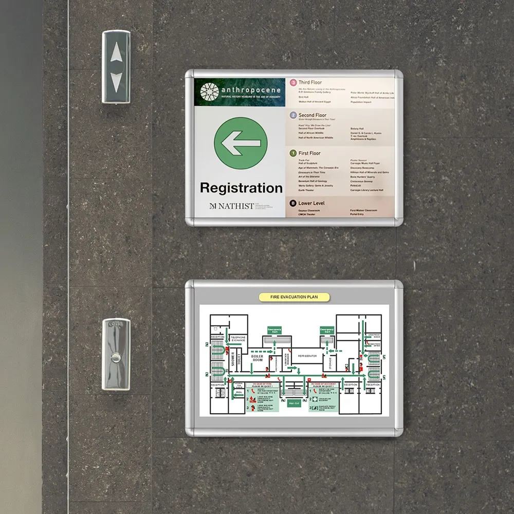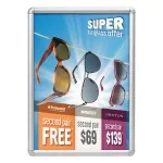 - Poster sign holder uses snapframe to hold graphics in place, with changes taking less than 1 minute!