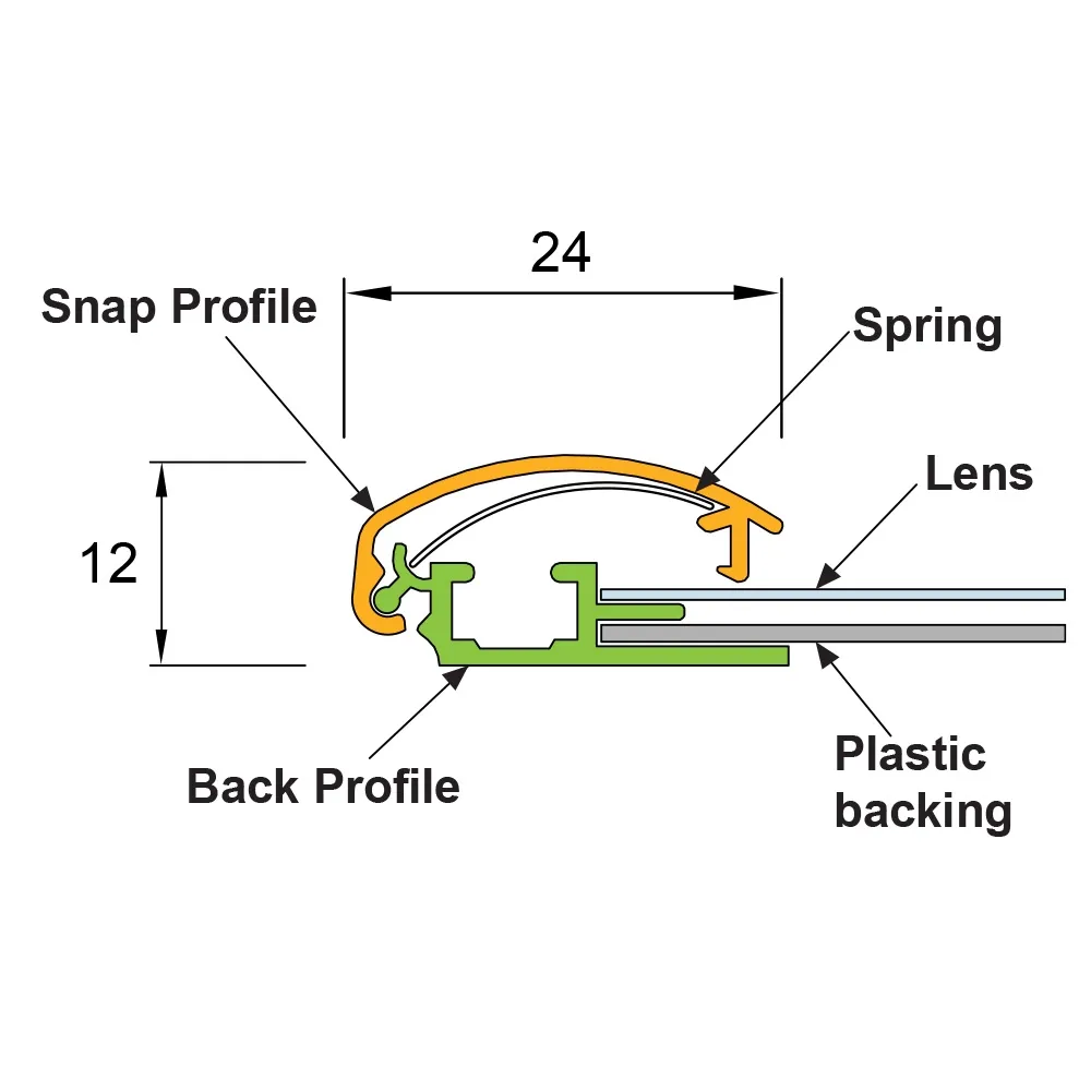 These snap frames make switching graphics an easy task that takes under 1 minute with no tools required. Simply snap open the (4) sides of the unit to gain access to the interior in seconds! There is an 0.4mm clear PVC lens included as well, which helps to protect displayed items from gathering grime and dust whilst making it easier to read.