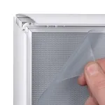 The snapframe, white poster frame is meant to hold an A2 (420 x594mm) graphic in portrait or landscape orientation, offering versatility in the design of your set-up. These displays also have a protective lens that keeps posters from getting dirty during use. The clear PVC lens helps increase readability and is easy to clean and maintain in every location.