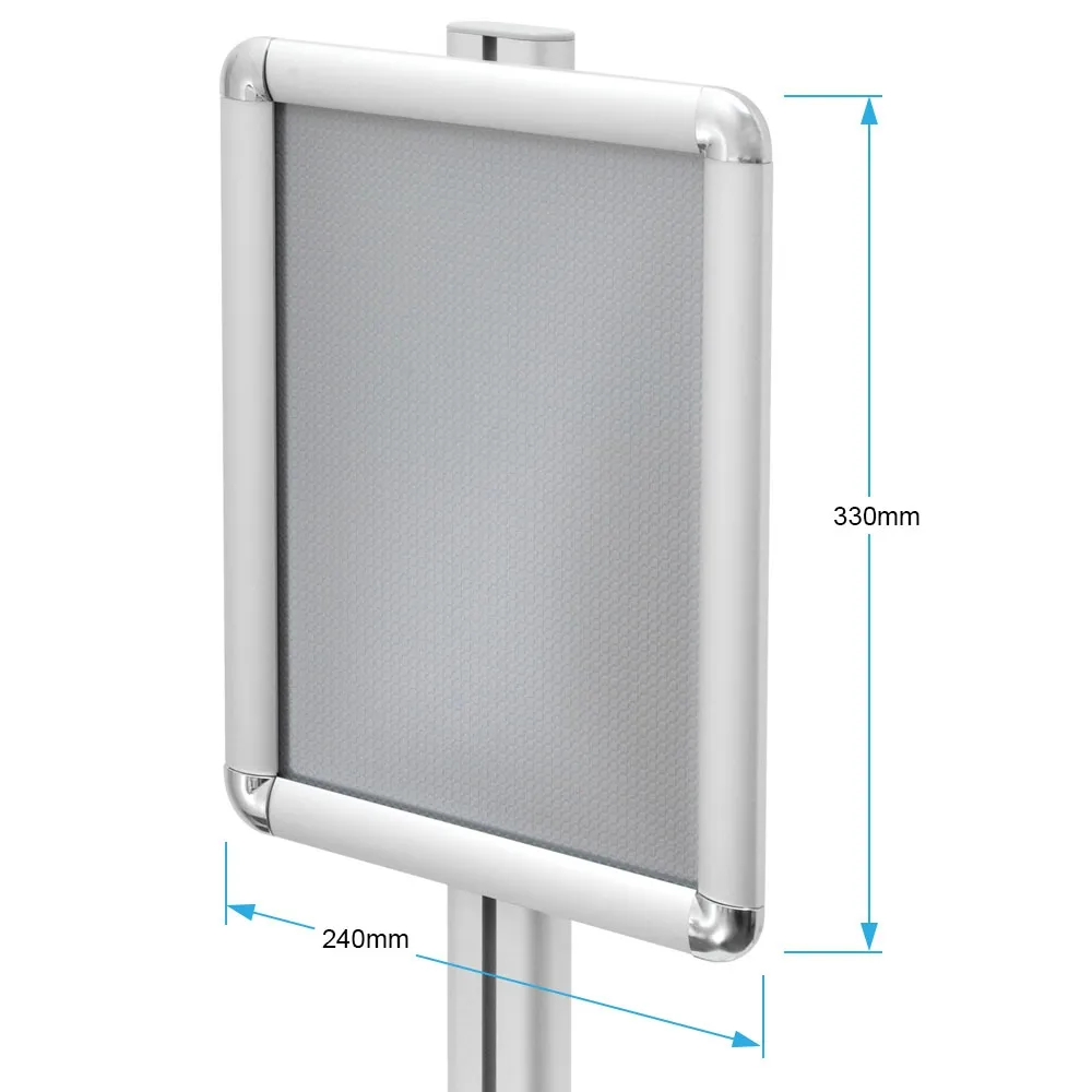 These graphic display stands feature snap frames for A4 (210 x 297mm) sized graphics. Your custom posters can be in either landscape or portrait orientation using the adaptable snap frames to allow your marketing team plenty of freedom whilst designing your promotional materials.