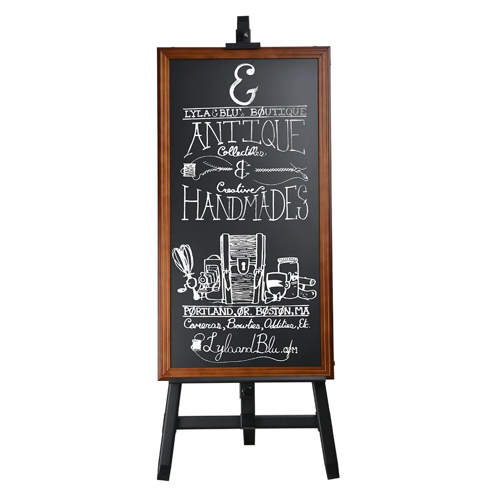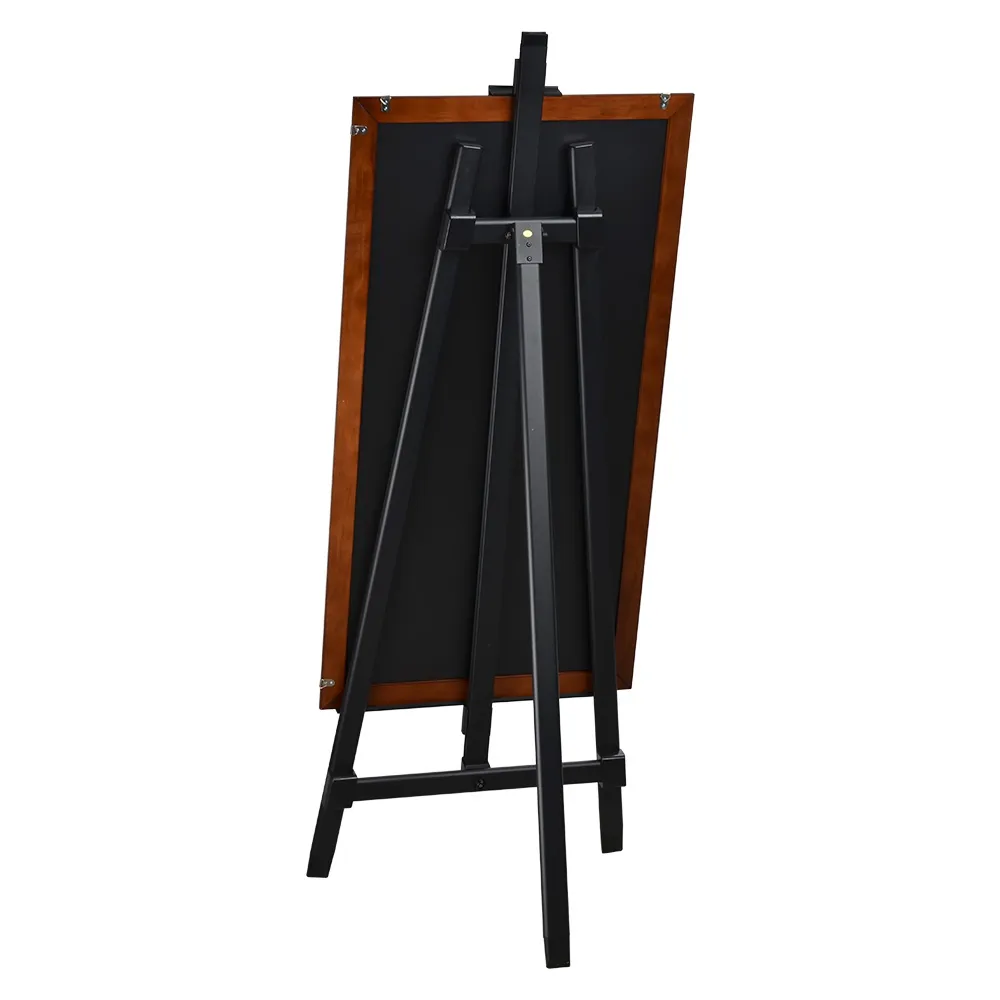• Wooden frame of black board has mahogany finish for complement to black easel