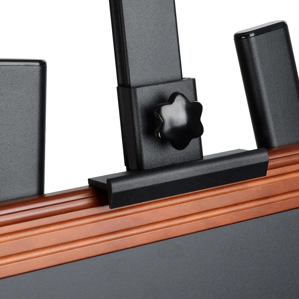 This chalkboard easel stand is great for setting up in a foyer, lobby, sales floor, and inside a cafe to show customers information as they enter or shop around. The menu board display includes an anodised aluminium easel with a black finish, offering a durable display at a great cost that works well in heavily trafficked areas. This easel features an adjustable top and bottom lip that securely hold the blackboard at your desired height, keeping it in place without flopping forward. The adjustable clamps make it easy to display the chalk board in portrait or landscape format depending on your need!