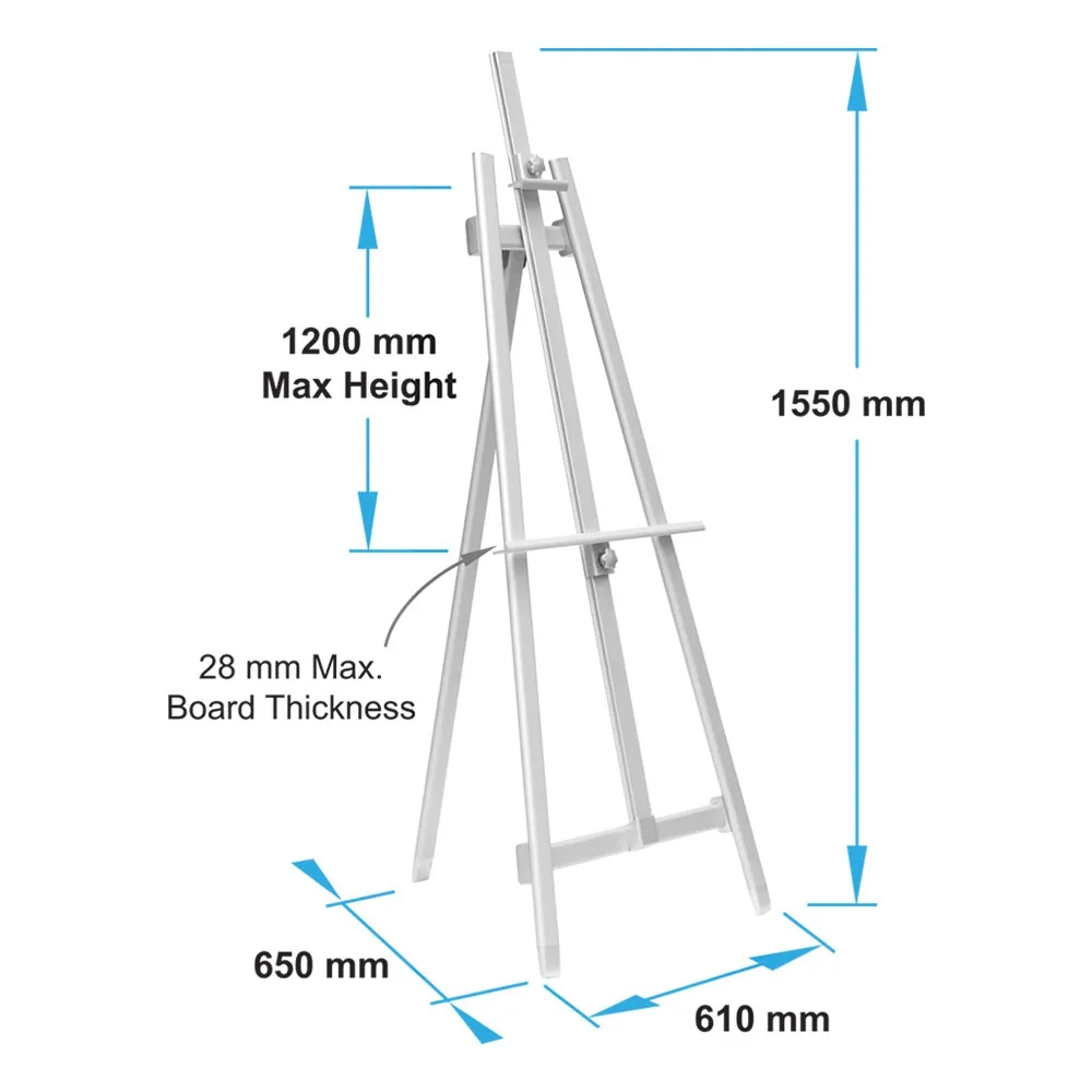 The art supplies stand, folding easels feature an aluminium make for a durable stand that is able to be placed in heavily-trafficked locations for use for years to come. A silver finish provides a professional appearance that works well within any décor! The easel features adjustable clamps that allow you to easily adjust the height of the displayed poster to best fit your needs. These clamps also help to ensure the picture poster frame stays in place!