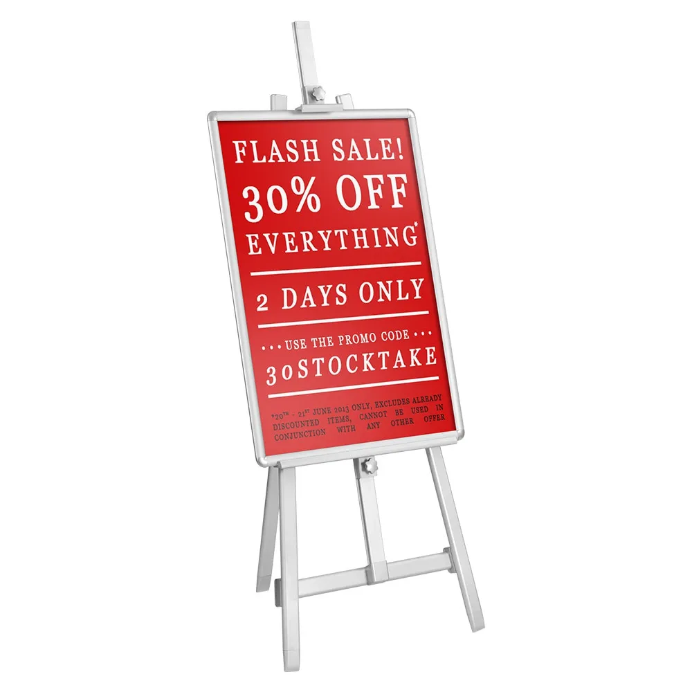 Poster stands of various sizes make it easy to show your graphics, informing passersby of new sales & upcoming events, or even displaying artwork in a gallery! There are different easel stands to choose from that make it simple to find the right size, finish, & style to fit in with your décor and needs.