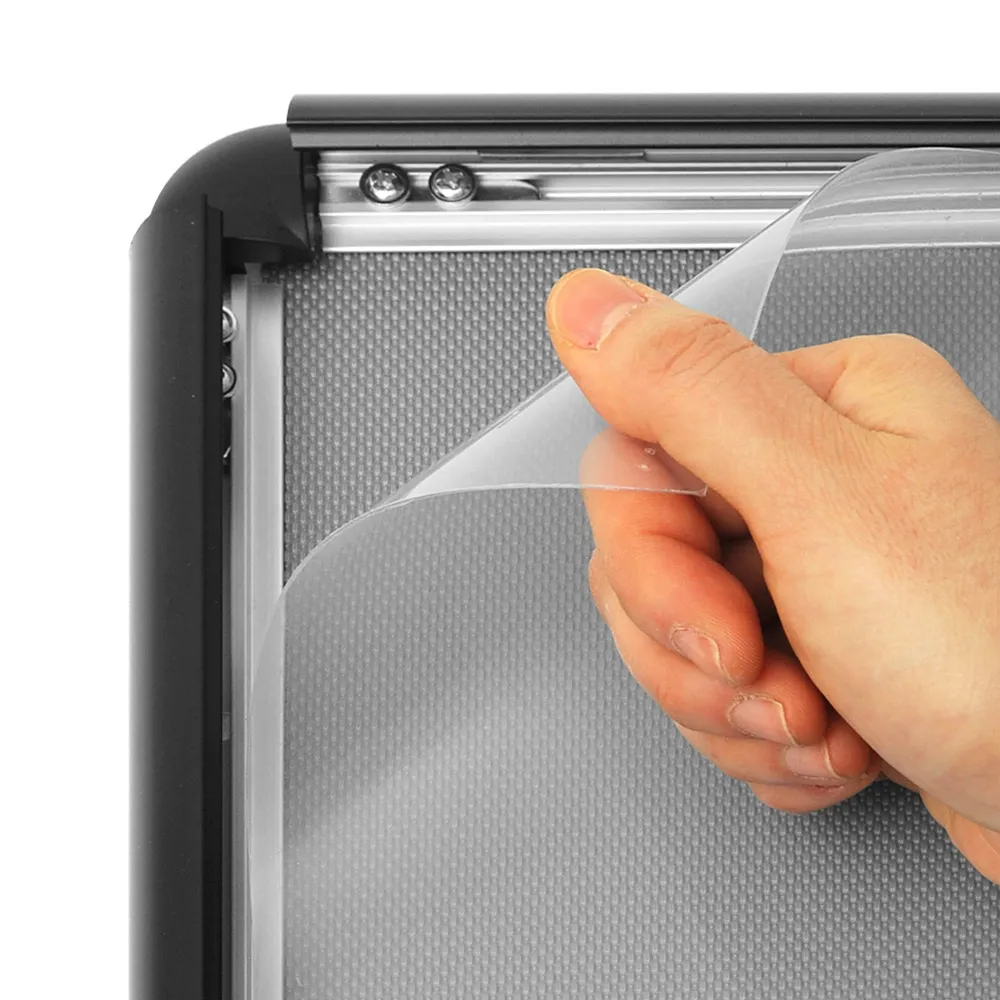 - A1 (594 x 841mm) snap frame has rounded corners & protective lens