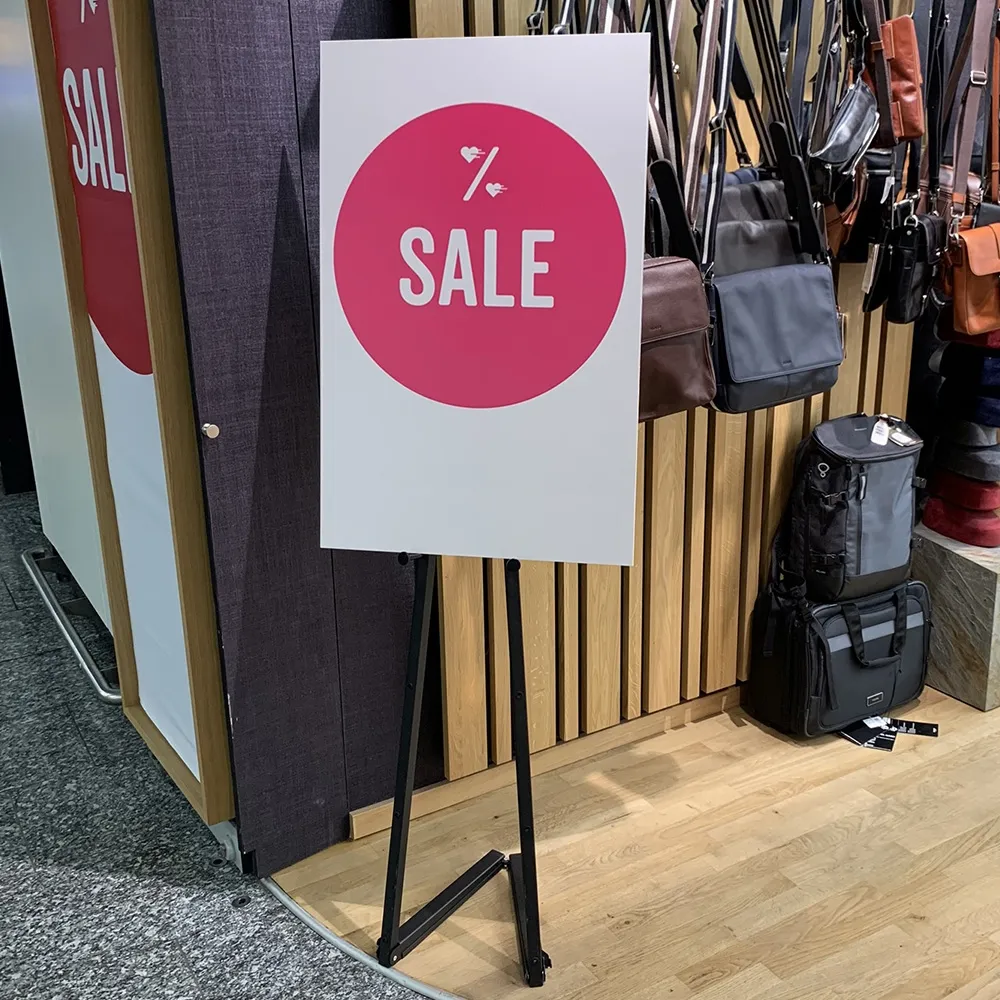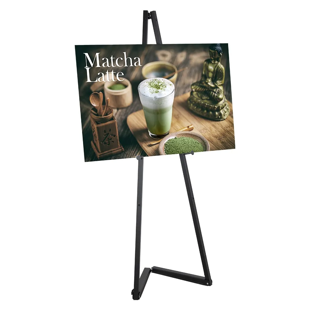- Easel with sign is portable display that breaks down to 1538 x 95mm for easy storage
