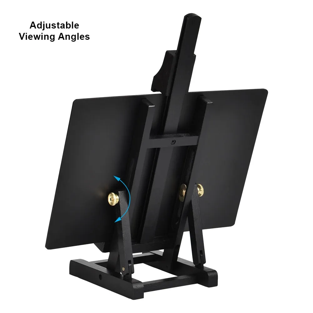 - 350mm tall black timber easel with gold hardware is great for countertop use