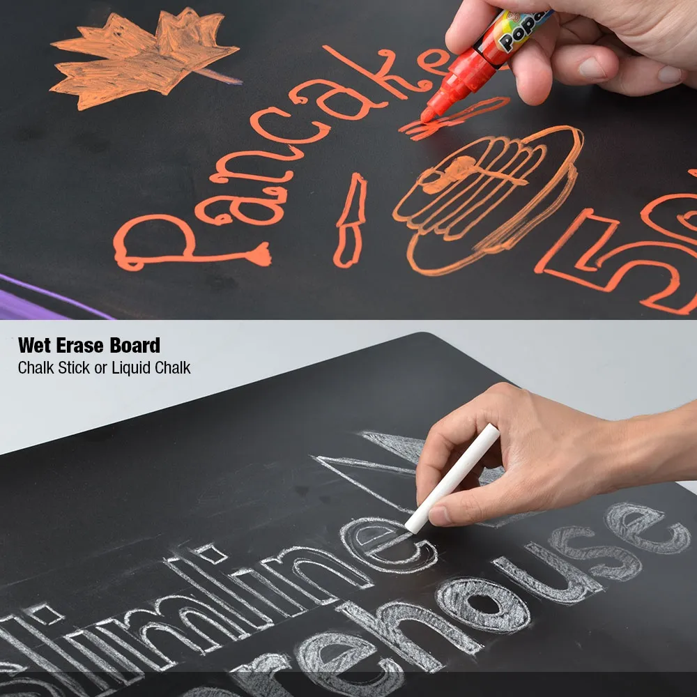 - 3mm thick board is dual-sided & can be used w/liquid chalk or chalk sticks