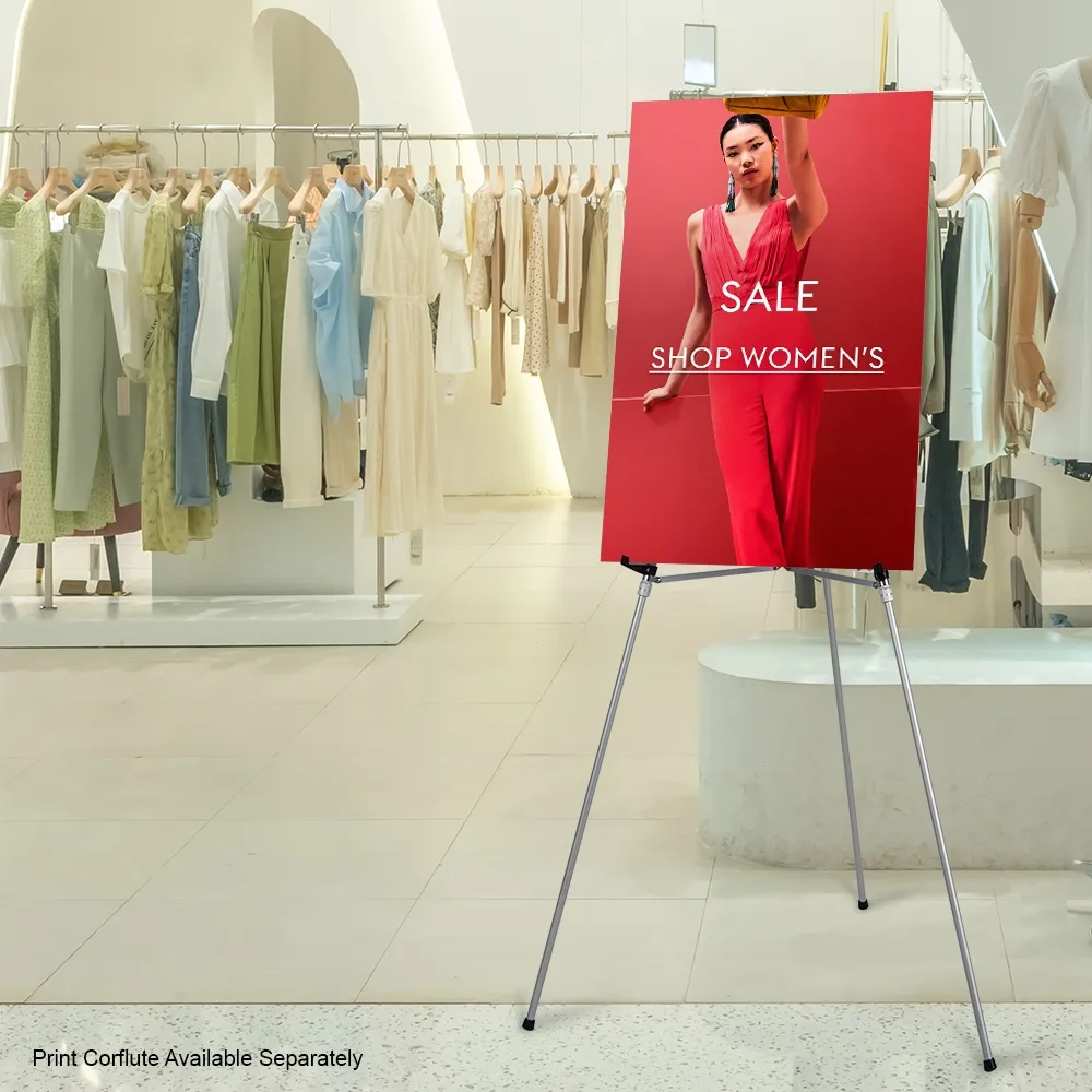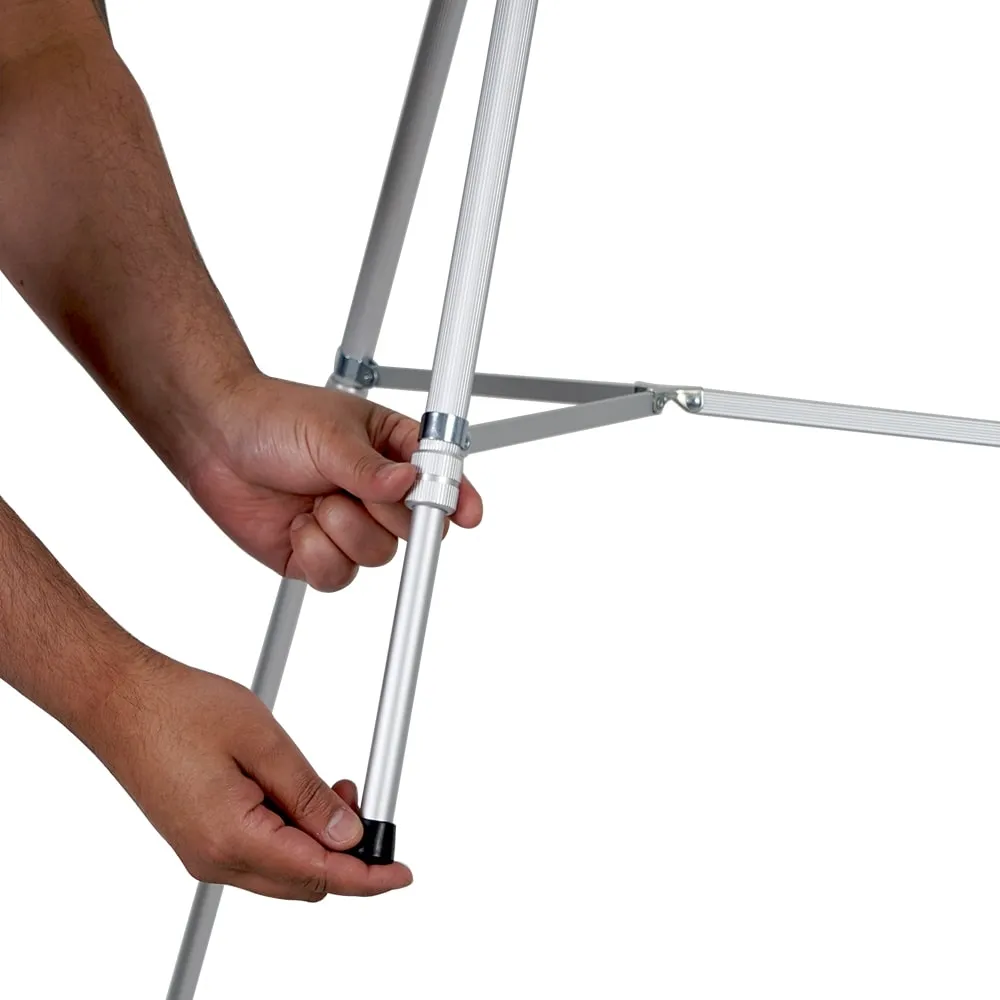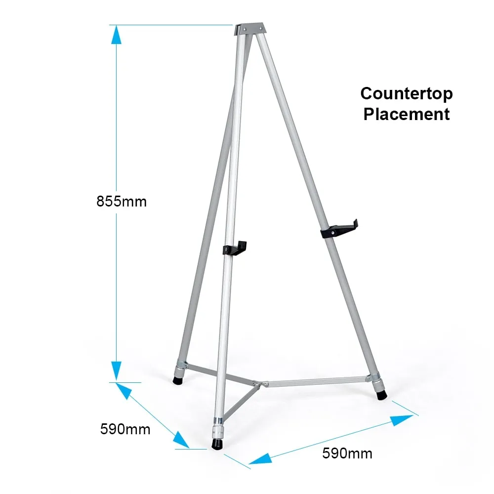 This instant easel is a versatile unit that can be used as a table top display or floor standing fixture depending on your needs! The telescoping legs can change the height anywhere between 85 and 163cm to place the displayed items at the appropriate height for your presentation. The legs are quickly adjusted with no tools needed, as there are twisting locks on each leg that make adjusting to the exact desired height and securing in place simple. Display poster frames or artwork in galleries, museums, retail stores, shopping centres, lobbies, exhibition halls, and more with this easy to use display.