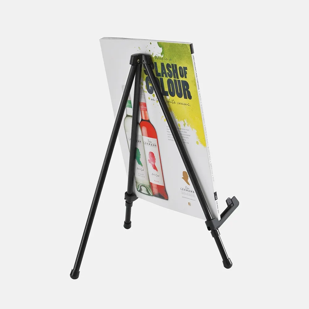 Many easels are available in our online product catalogue in different styles to fit various needs. We have many finishes and sizes to choose from, in addition to floor-standing or countertop units that help your business to find the proper display for your needs. Placement of items on these easels is easy, and the ability to place these countertop tripods on to most surfaces due to their lightweight design makes them an ideal product for almost any location!