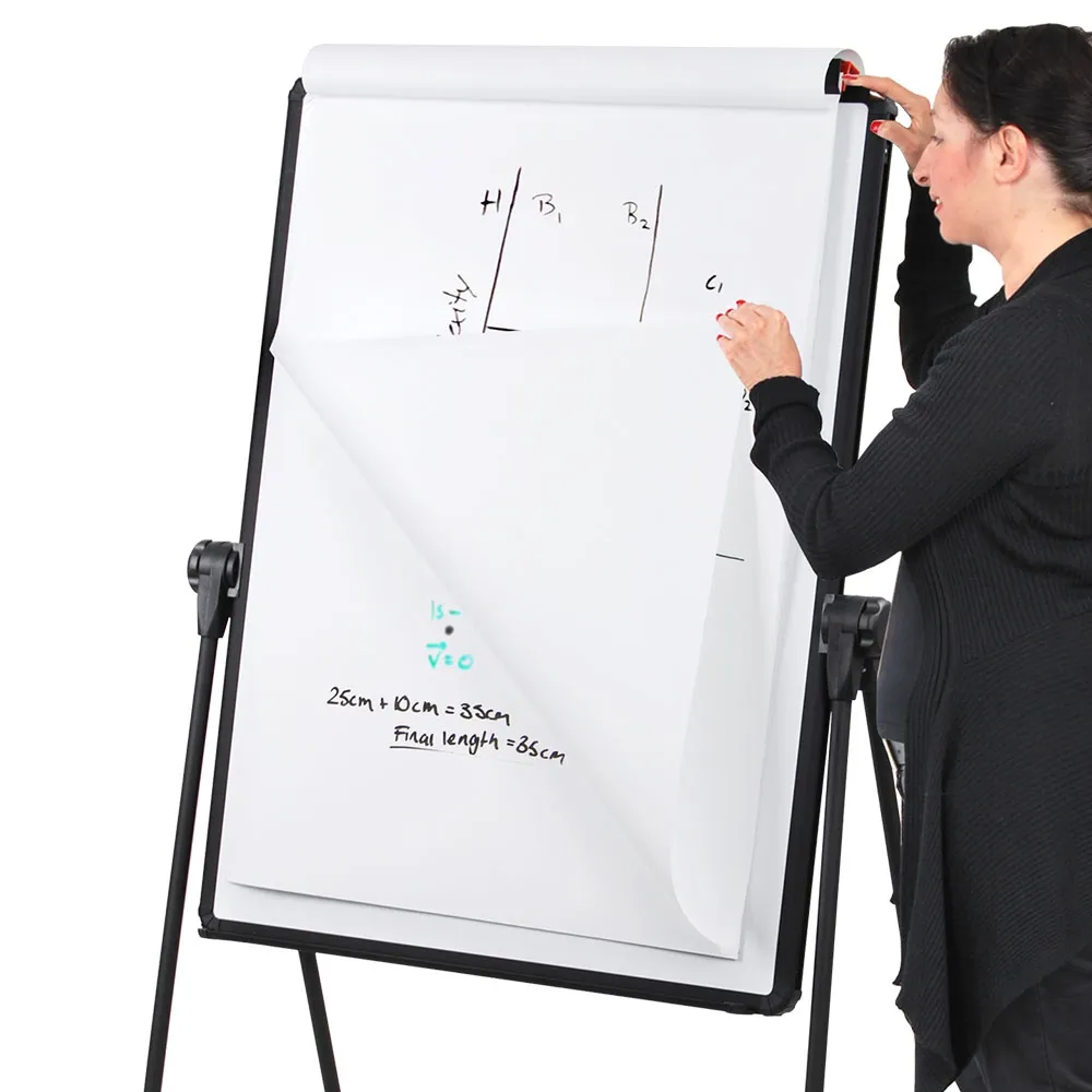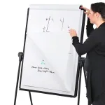 The white board easels fold down small for easy storage when not in use. The lightweight aluminium frame makes it easy to move the unit into position for any employee, whilst providing a durable stand that is able to be used for years to come. There is also a flip-chart holder at the top of the frame that can easily hold large note pads (not included) with the spring-loaded clamp. Order an aluminium display stand today for use at your business!