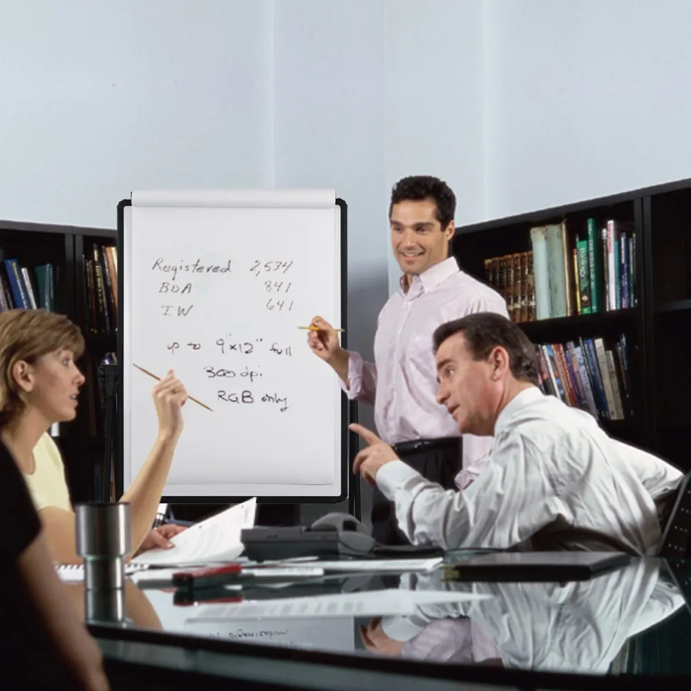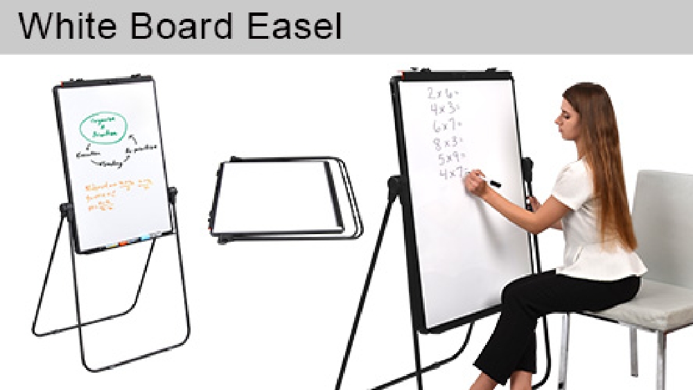 - Dual-sided whiteboard surface makes it easy to get clean surface to write on or to promote in multiple directions