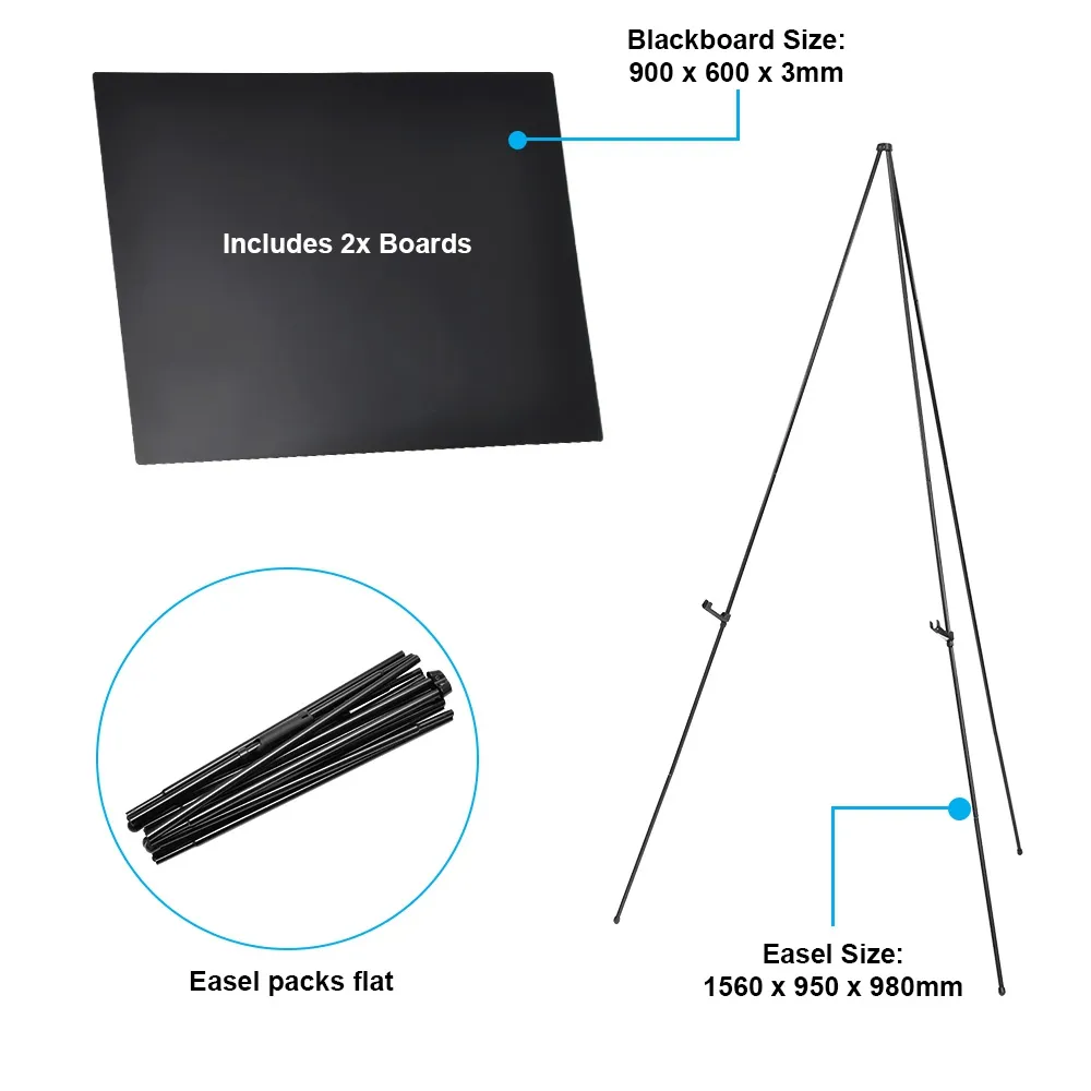 If you are in need of an easel and blackboard that is totally portable and works with any budget, this two in one kit is for you! The menu stand has a totally portable easel that folds small, great for storage and transport if intent on bringing the display to different events. When collapsed, the menu display is only 410mm to easily be stored, with simple assembly using telescopic legs that require no tools for quick set-up in minutes. The easel is made from solid aluminium with a black finish to fit in with all locations.