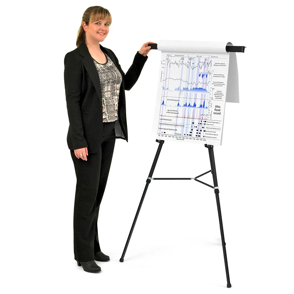 This easel has many features that allow it to be used in different venues with ease. These easels can be found at art galleries holding up canvases, in malls and foyers showing a restaurant menu board, and especially in presentations, where the stand can hold a flip chart to help give the audience something to focus on visually.