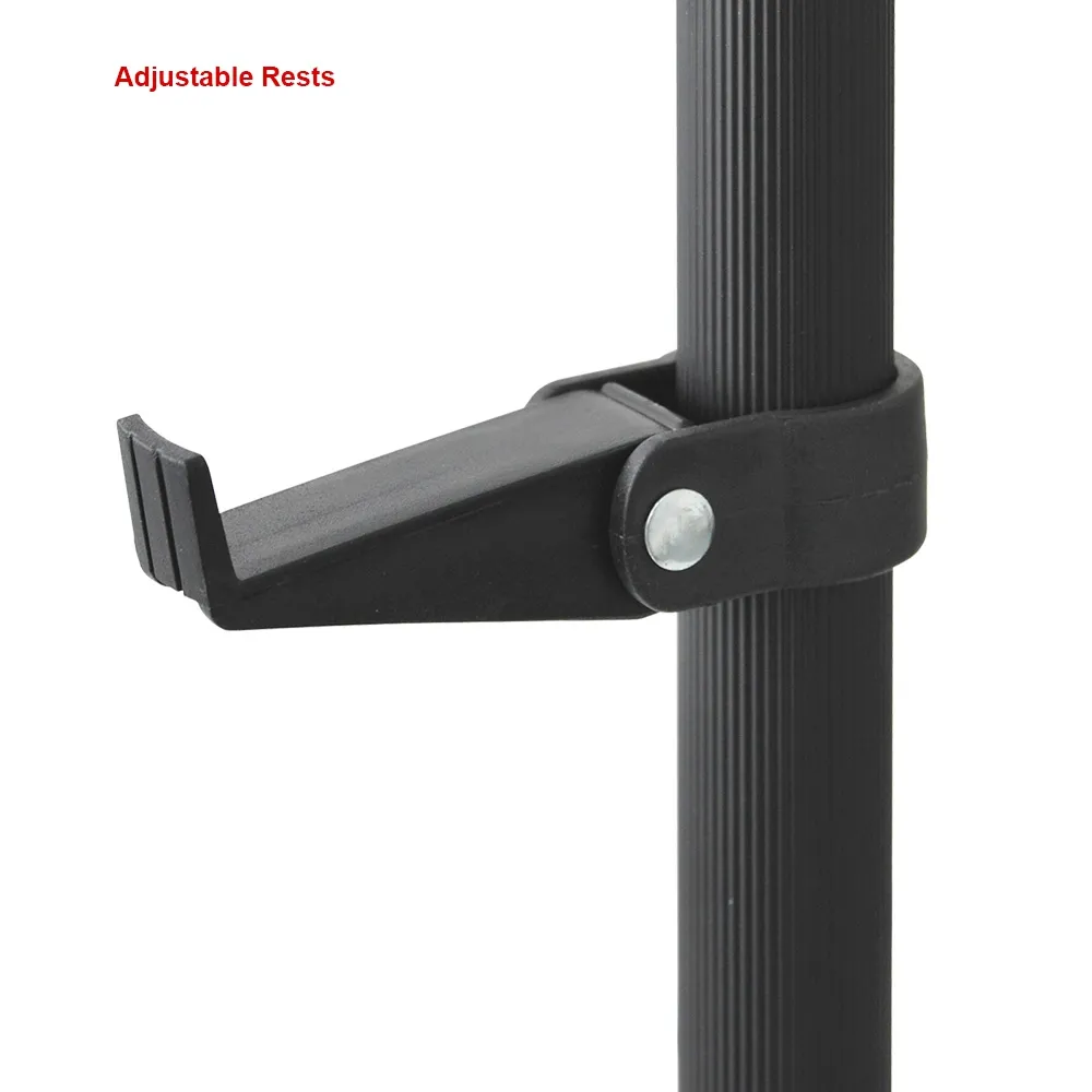 The black tripod, easel features a clamp that attaches to the top of the stand that is used to hold a flip chart. Traveling businessmen will find this display useful due to this feature, as well as the lightweight design. The easel also has two adjustable plastic clamps that can support up to 3kgs to easily hold most items that would be used with this stand.