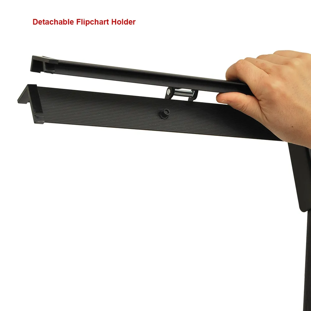 - Easel includes optional clamp for top of unit that holds flipcharts for use in presentations!
