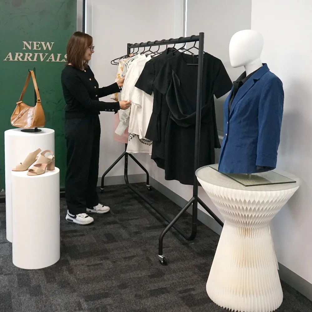 • Garment rack with wheels features 1540mm height to display different clothing lengths