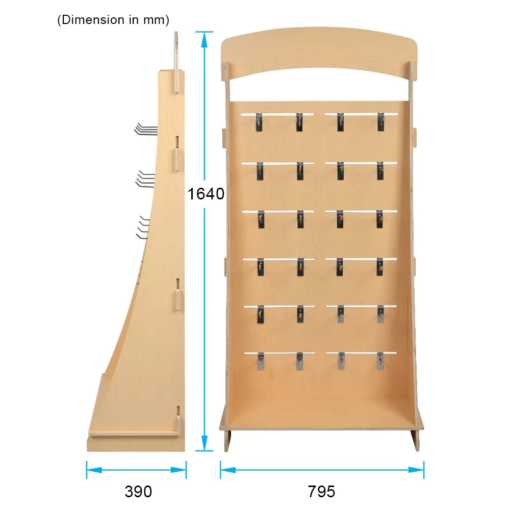 The retail slatwall systems also have a bottom shelf that is 750 x 350mm and can hold larger items than the hook can support. The store fixtures use a tiered design that helps to maximise space by holding more products within a 795 x 390mm footprint, leaving heaps of space for other fixtures and for customers to mill about. The 1640mm tall fixture has a large header area on top that is great for placing promotional and sale signage to help get customers interested, with the 795 x 160mm area able to hold a large eye-catching sign that will surely get noticed by passersby!