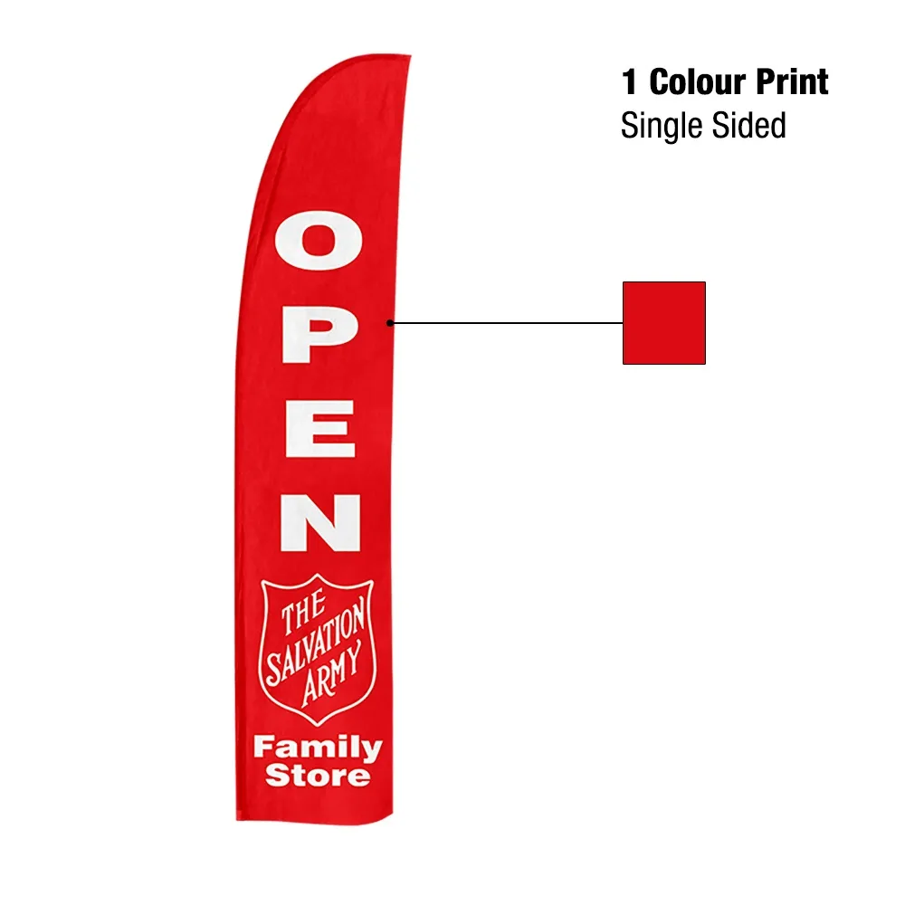 This screen printed flag is an additional banner for use with 3.1m tall beach banner kits with any style of base. Your designs are printed in 1 colour onto a white fabric flag, with the background able to be used as a second colour. There is a reverse print on the back of the flag to create effectively a 2-sided flag that is visible in multiple directions at once to maximise visual impact. The flag itself is made from durable polyester for use inside or outside and has a reinforced channel sewn into it for flag pole insertion. Our in-house team of experts is available for design help if needed, offering three tiers of assistance based on graphic requirements. Slimline Warehouse offers fast shipping to anywhere in Australia, buy online today!