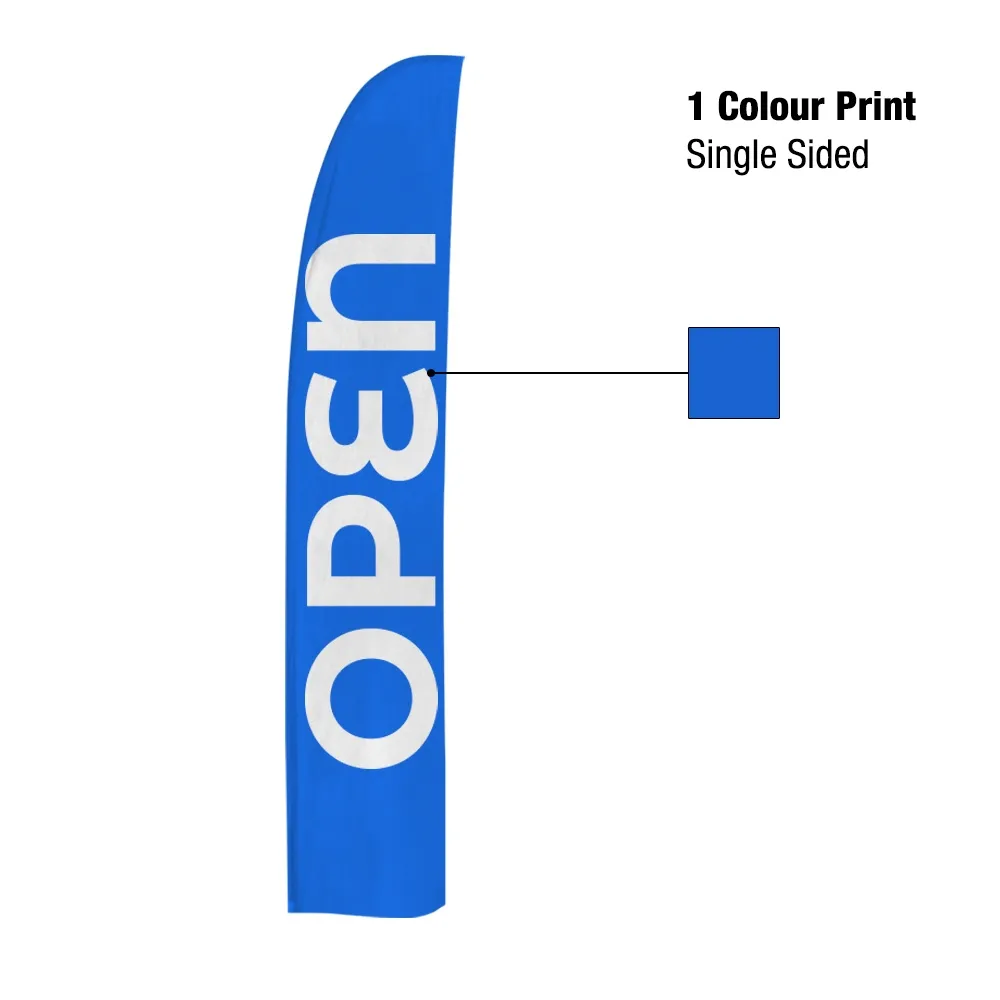 These screen printing flags, also known as a promotional graphic flag, has three sizes of flags to choose from: 3.7m (Large), 3.1m (Medium), & 2.3m (Small). Each flag is made of woven polyester fabric for a durable, long-lasting display that works in different climate conditions. A screen printing process is used for a cheaper process that still looks great, helping fit into any budget. Order today for use inside or outside at retail stores, shopping centres, car dealerships, outdoor festivals, restaurants, cafes, & more!