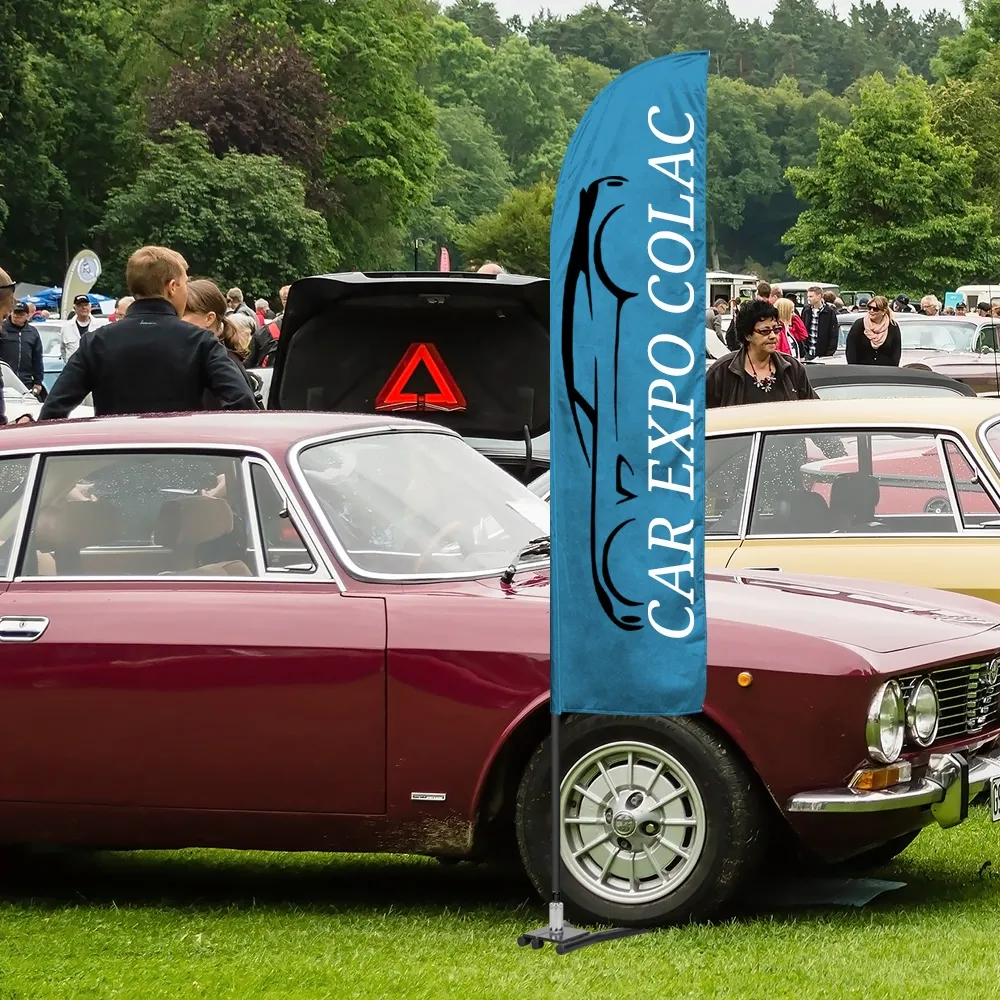 The custom banner displays, bow flags help you to promote your business in style using custom designs digitally printed for a true depiction of your graphics onto the material. You may choose to have the advertising flags printed single-sided with a reverse print on the back, or double-sided which has two flags sewn together to be easily read from both sides!