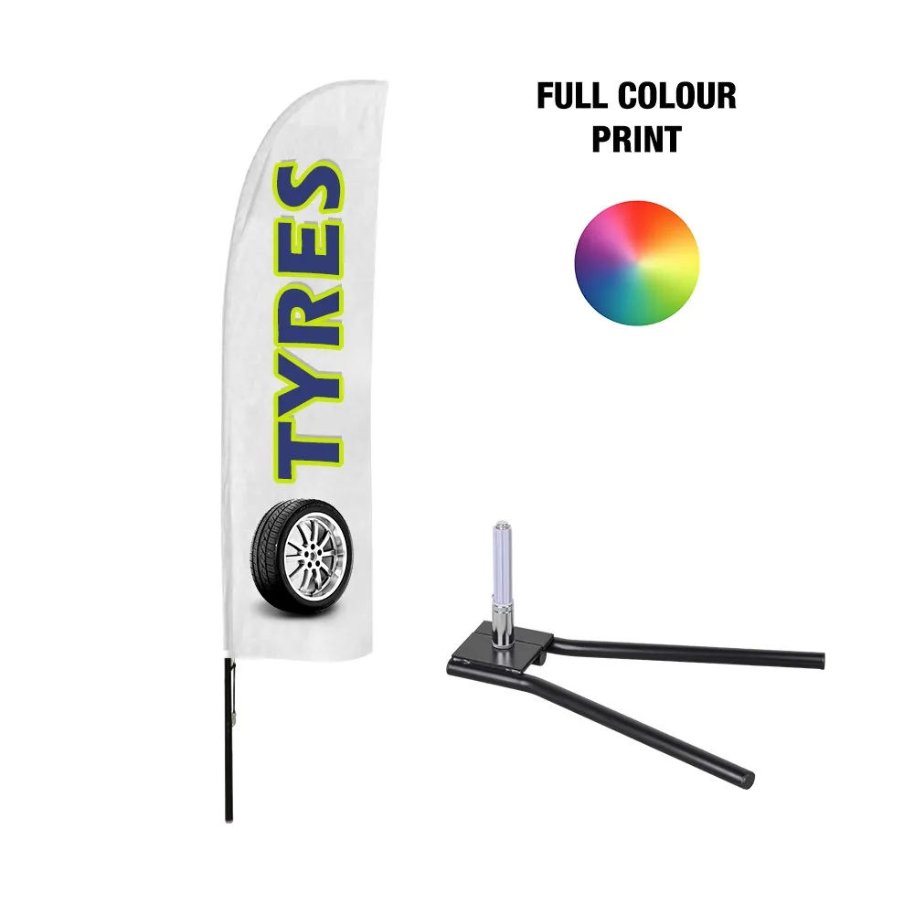 The bow flags are 2.2m tall, easily seen to help promote your company to passersby. These teardrop banners are portable displays, with no tools needed for quick assembly in minutes. A nylon carrying is included for bringing the flag between events as well as storage in between uses. The base of the display is designed to be placed underneath the wheel of a car at outdoor events for a stable teardrop banner. When purchasing a single-sided display, you receive a fibreglass pole, whilst the heavier dual-sided option includes a heavy duty metal pole to support the added weight.