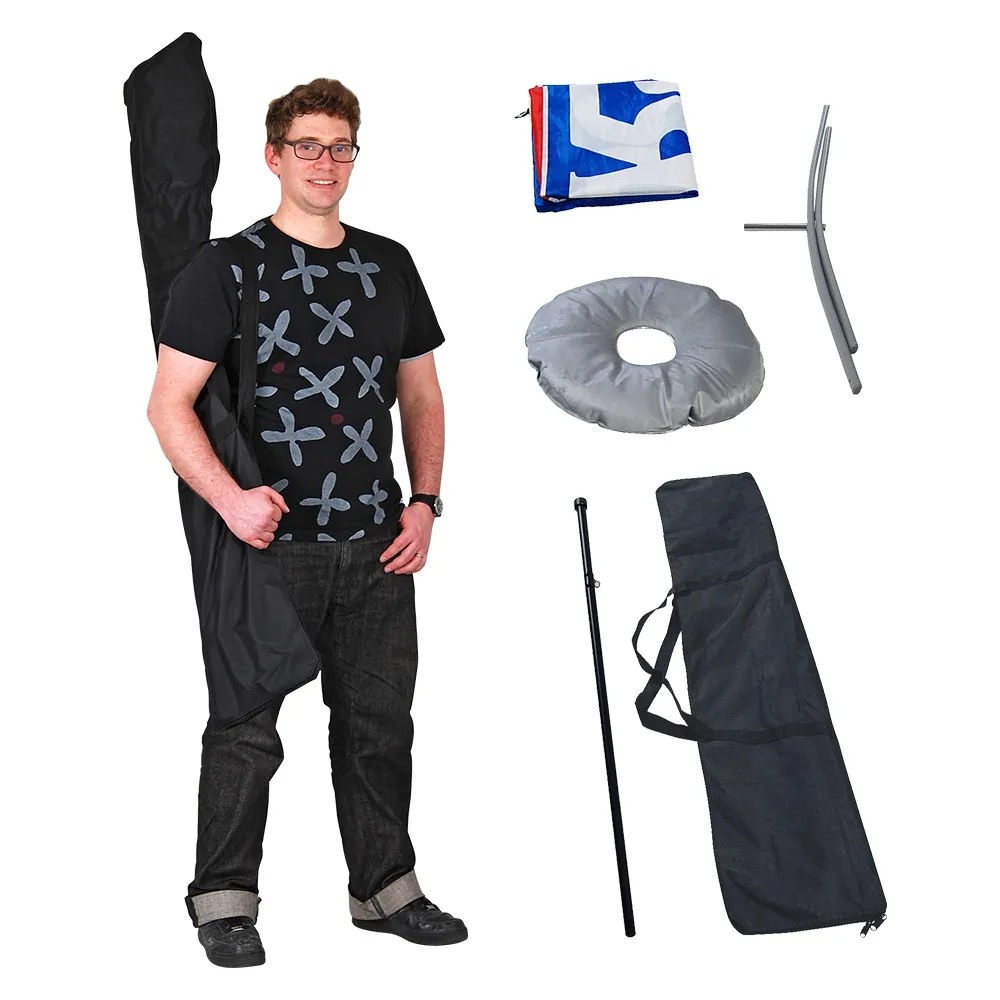 The advertising banner, promo flag has a cross base designed for use on different surface types, allowing both indoor and outdoor use. The water bag included with the kit helps stabilise the stand during light breezes and help prevent knockdowns in public areas. Assembly is quick and easy with no tools needed, with full set-up only taking a few minutes. A nylon carrying bag is included with purchase that holds all kit components and makes transport to events easy whilst keeping the fabric free of dirt or grime in between uses. Slimline Warehouse has hundreds of items in stock to choose from in a variety of categories to fully outfit your location. Orders ship fast to anywhere in Australia from our location in Melbourne, buy online today for quick dispatch to your business!