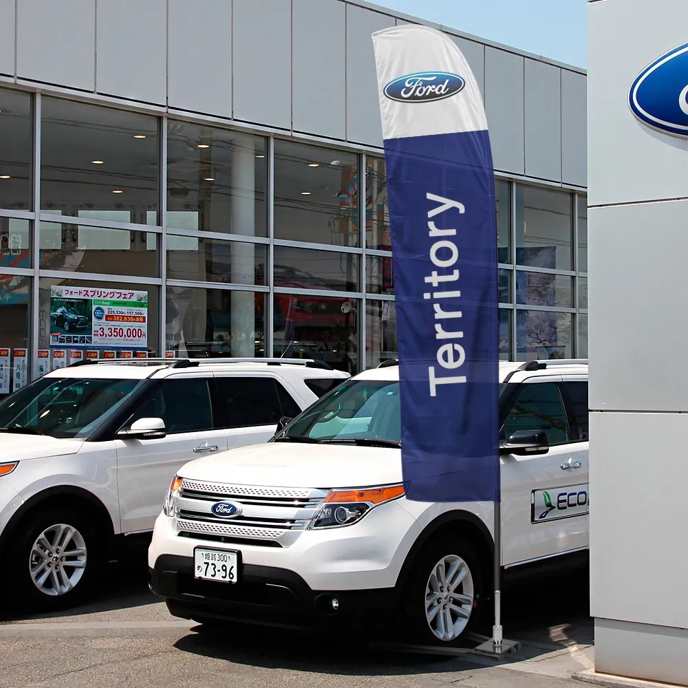 This flying banner stands 3.1m tall, a perfect height for drawing the attention of passersby at your car dealership, retail store, restaurant, cafe, or at outdoor events! The advertising flags have a car base included that is placed under the wheel of a car to provide a stable flag that will work great in most weather conditions! The portable display requires no tools for assembly quickly, and a nylon carrying bag is also included for easily transporting the display between events or storage in between.