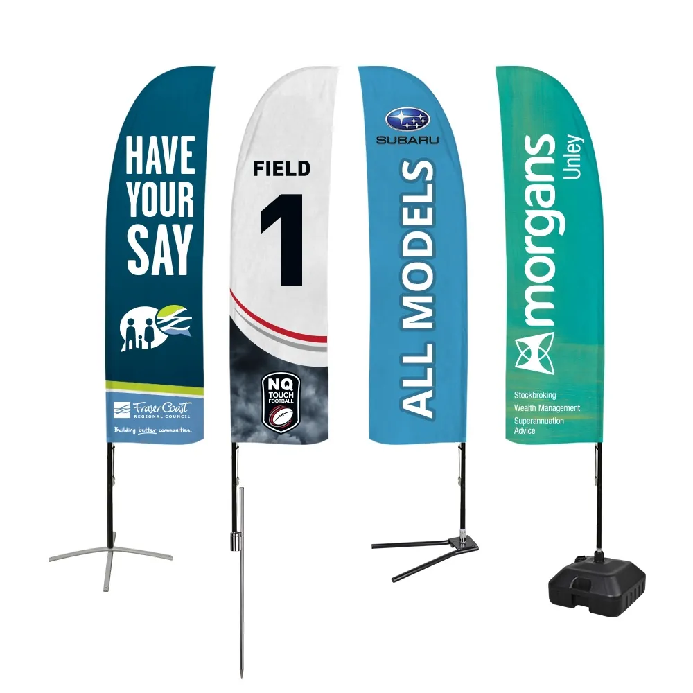 This dual-sided banner has printing on both sides for easy advertising in multiple directions at once from a single stand! The flag is sized to be used with 2.4m beach banner kits with any style of base, perfect for use at cafes, exhibition halls, car dealerships, restaurants, retail stores, museums, information centres, and more. Designs are digitally printed directly onto the fabric banner using a dye-sublimation that results in rich colours and vivid imagery that are less prone to fading over time. There are two flags individually printed and sewn together to be more durable, with each banner made of polyester that is suitable for both indoor and outdoor use. Our in-house graphic design team is available if assistance is needed, with three tiers to choose from depending on your needs. Order online today for quick shipping to anywhere in Australia, only from Slimline Warehouse!