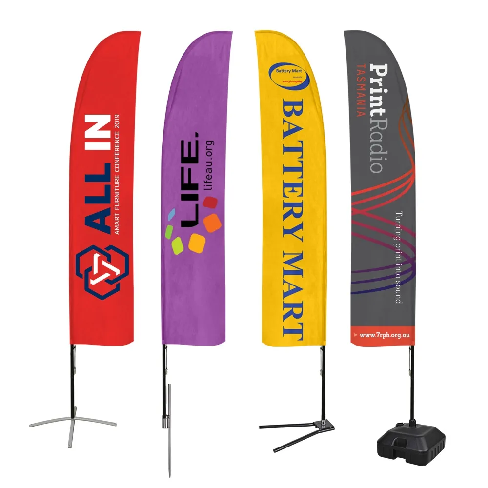 Use this dual-sided flag outside of retail stores, museums, shopping centres, car dealerships, cafes, information centres, tents at festivals, and more to reach more passersby from a single stand. This banner is sized to fit 3.1m tall beach banner kits, and has a reinforced channel to place the metal flagpole through for assembly. A digital printing process is used to place your graphics directly onto the fabric using dye-sublimation to provide rich colours that are less likely to fade over time. The banner is made from polyester fabric that offers a durability that holds up well over time when used both inside and outside. There are actually two flag sewn together to create a more durable flag with the same imagery on both sides. In-house assistance is available, with our design team offering three tiers of help depending on the level of your needs. Order online today for quick shipping to anywhere in Australia to have updated graphics for your upcoming events, only from Slimline Warehouse!