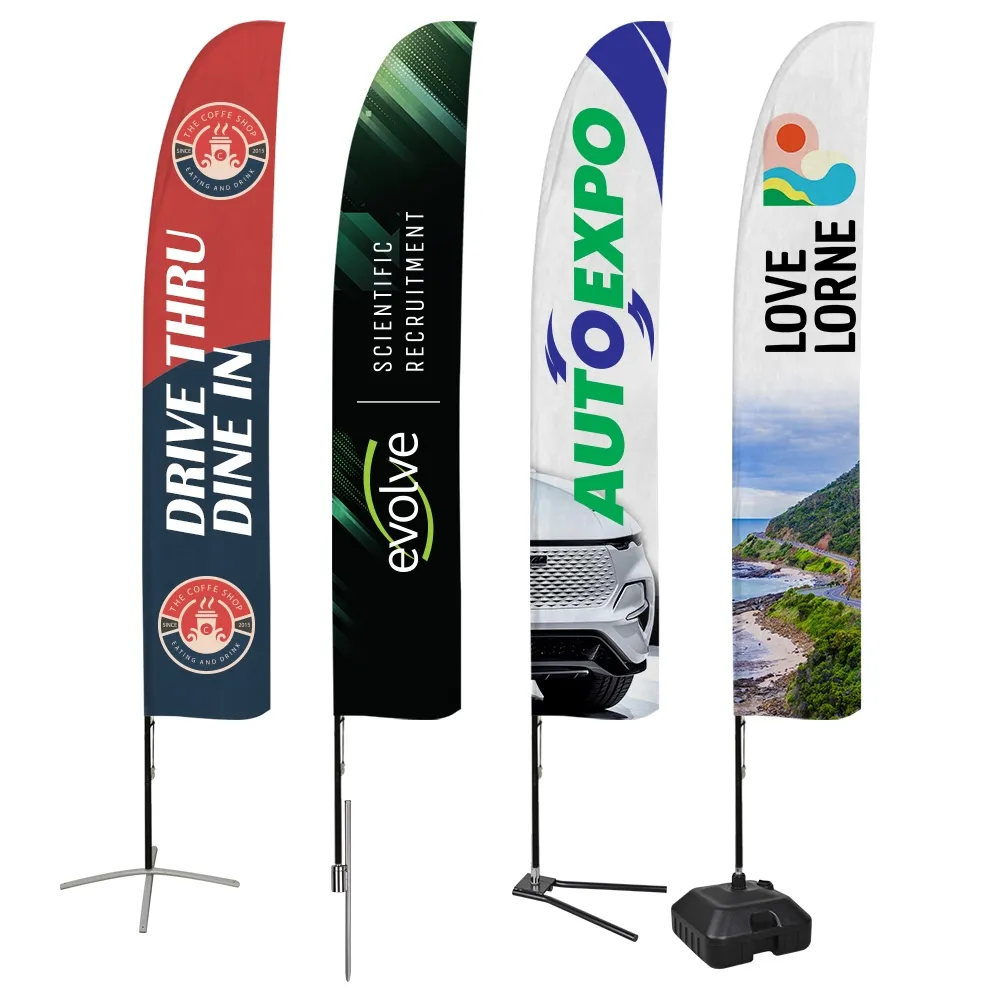 This custom printed banner is an additional flag for 3.7m tall beach banner kits with any style of base. Your graphics are digitally printed directly onto the fabric using a dye-sublimation process that ensures a true to design depiction in full colour with vivid imagery. The print bleeds through to the back of the flag as well, providing a reverse print that turns the banner into a 2-sided display for better visual impact. The flag is made from durable polyester fabric to be long-lasting and work in both indoor and outdoor environments. A channel sewn into the side of the flag is for the flag pole, and is reinforced for extra durability. Contact our in-house design team for graphic assistance, with three tiers to choose from in order to best serve your exact needs. Slimline Warehouse offers fast shipping to anywhere in Australia, buy online today to have new graphics for your upcoming events!