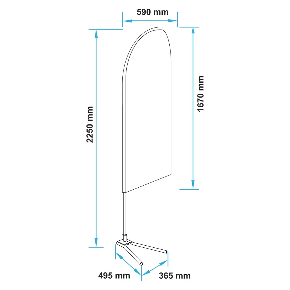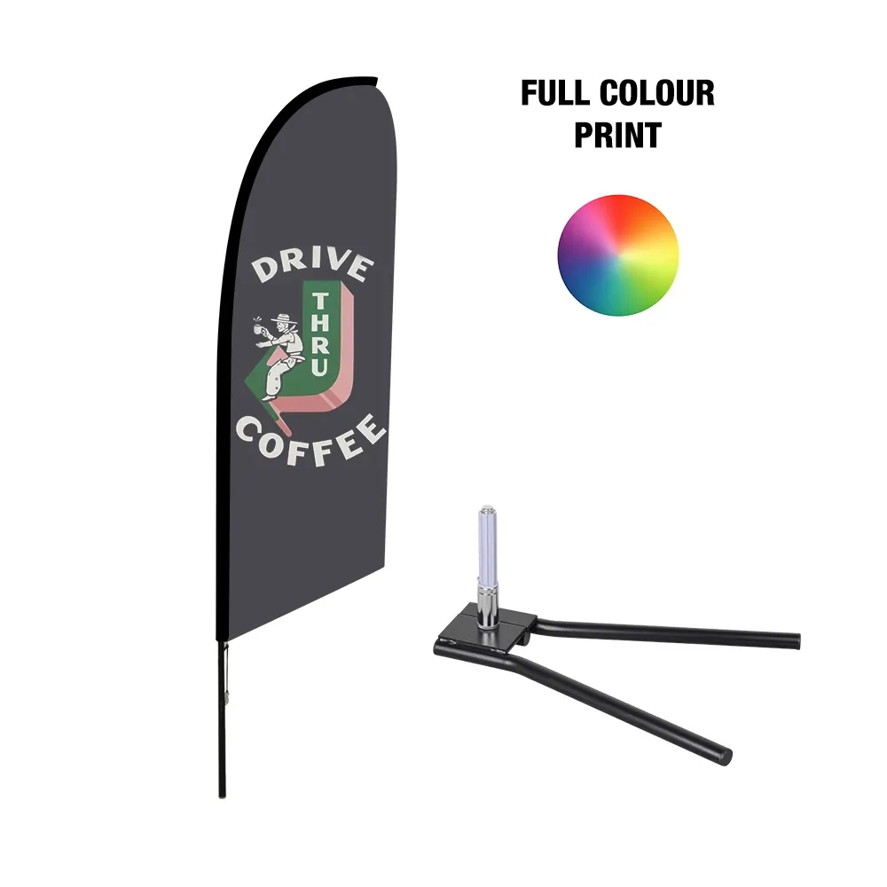 A bow banner is a great way to promote your business using your custom designed graphics to draw in passersby at your car dealership, retail store, cafe, restaurant, or outdoor event. The blade flags digitally print your designs onto a woven polyester flag for a true depiction of your graphics, with a reverse print on the back that is still readable. The 2.3m feather flag has a fibreglass pole included to support the flag and provide stability in most weather conditions.